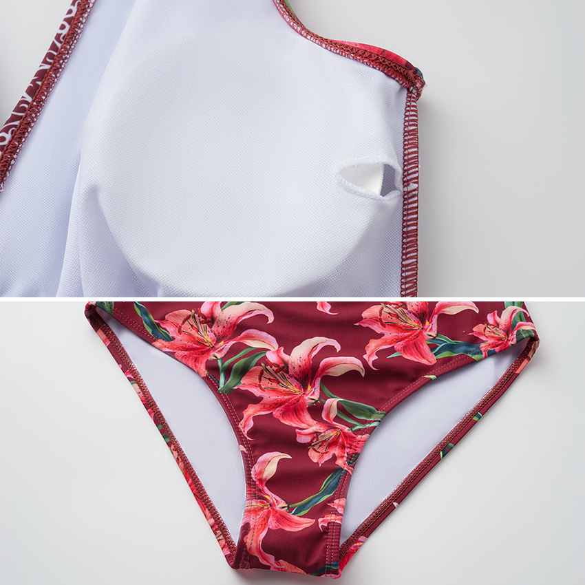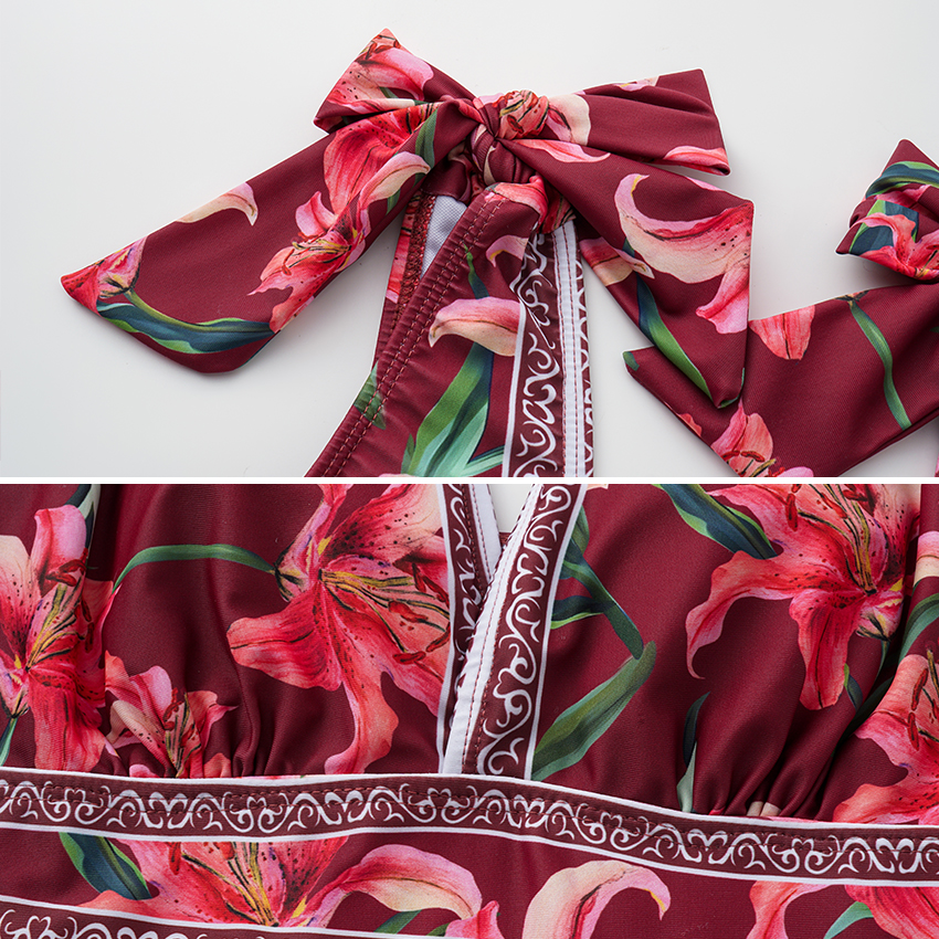 V Neck Tie Shoulder Lily Print Swimsuit Set(s)