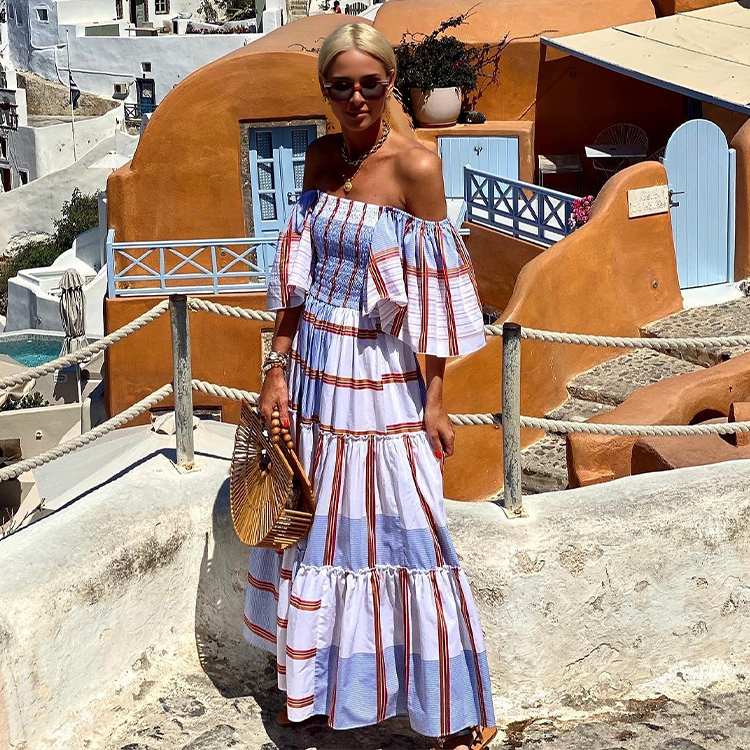 One Shoulder Ruffle Stripe Print One Piece Swimsuit and Skirt