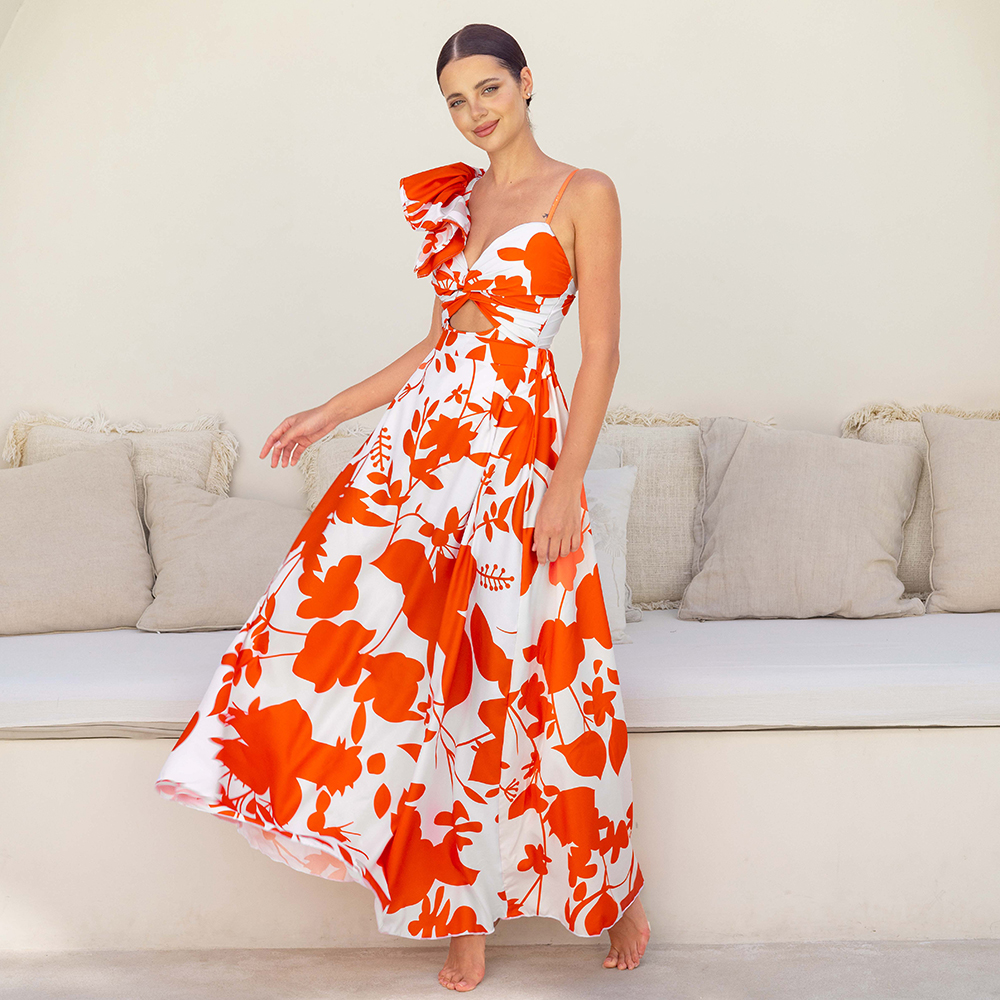 Lemon Print Tie-shoulder One Piece Swimsuit and Sarong or Skirt Flaxmaker