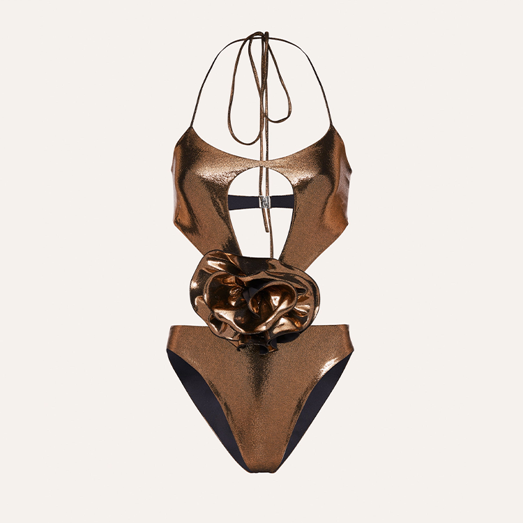 Black Laser Cutting Flower Hollow One Piece Swimsuit and Skirt