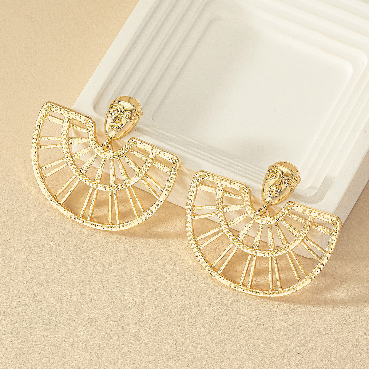 Fan Shaped Beauty Head Earrings
