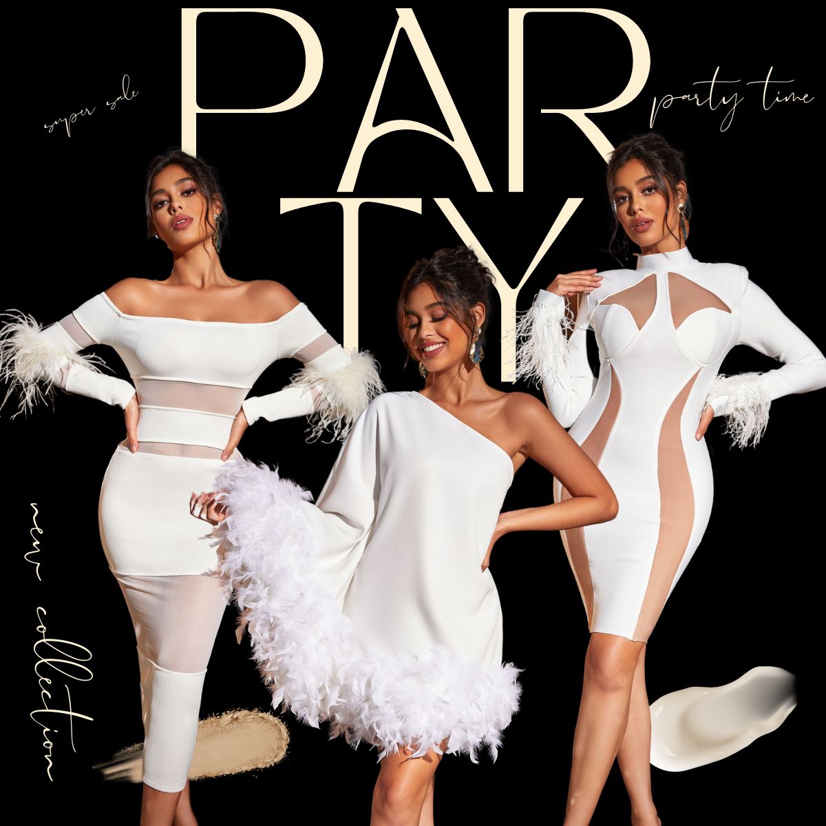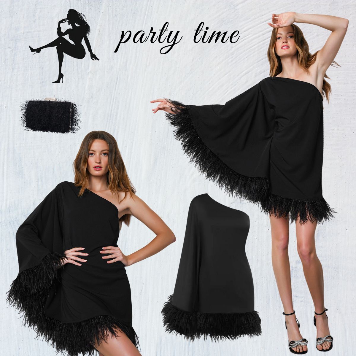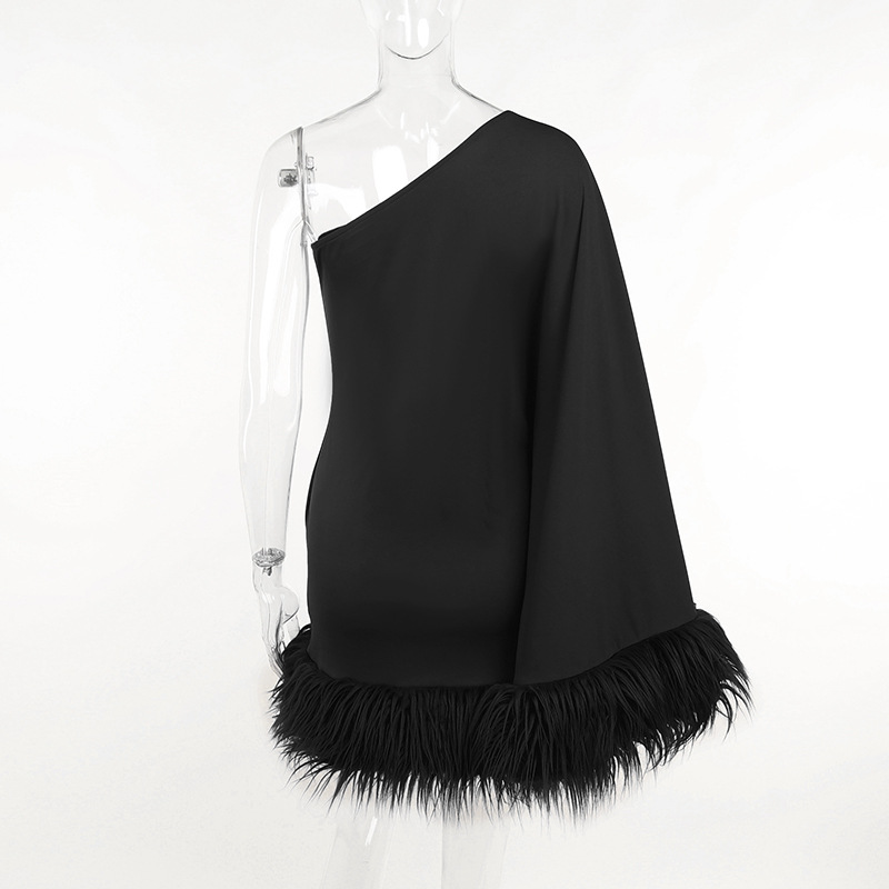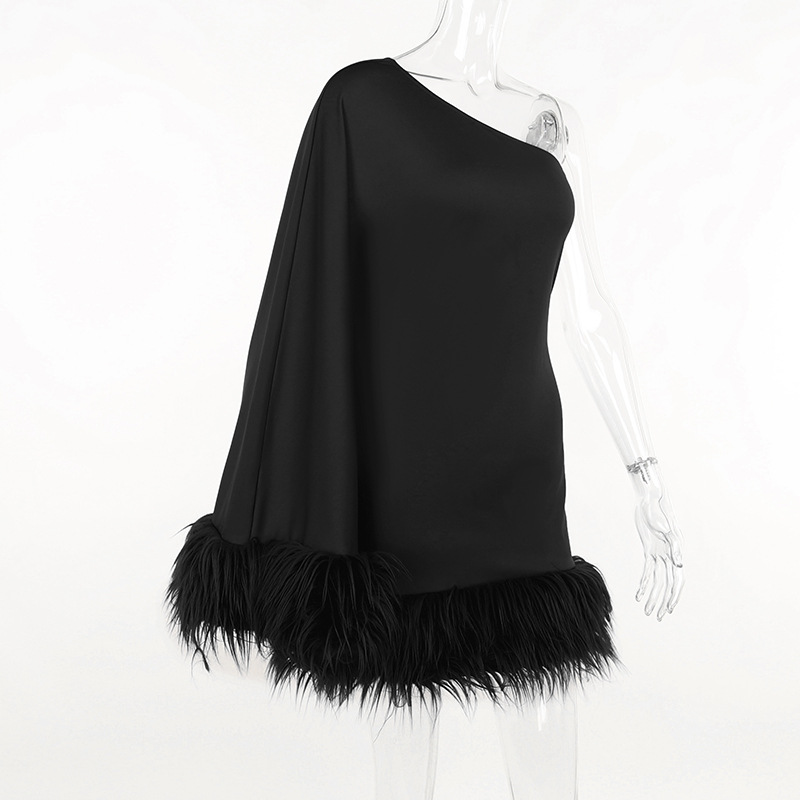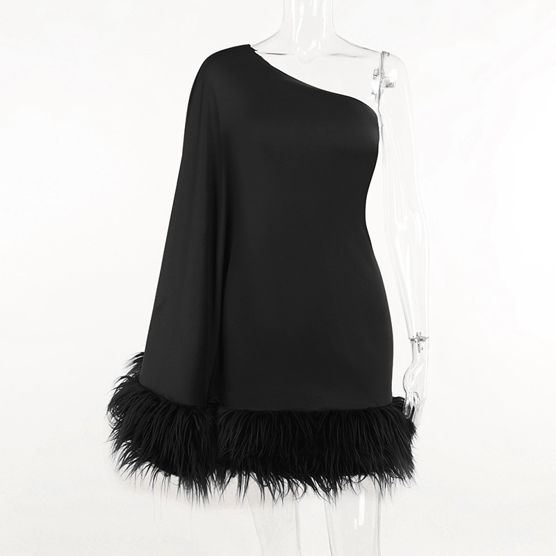 Oblique Shoulder Feather Party Dress