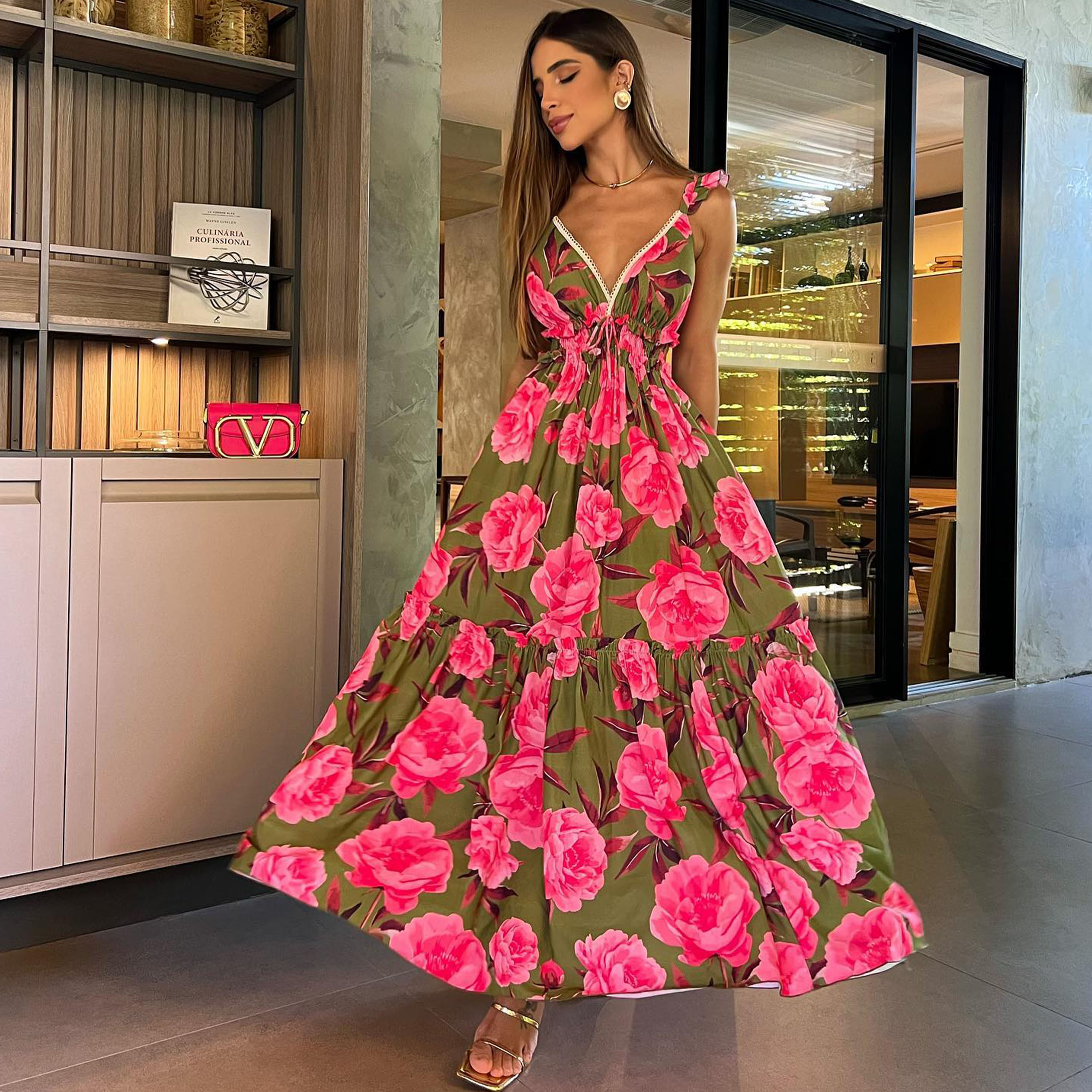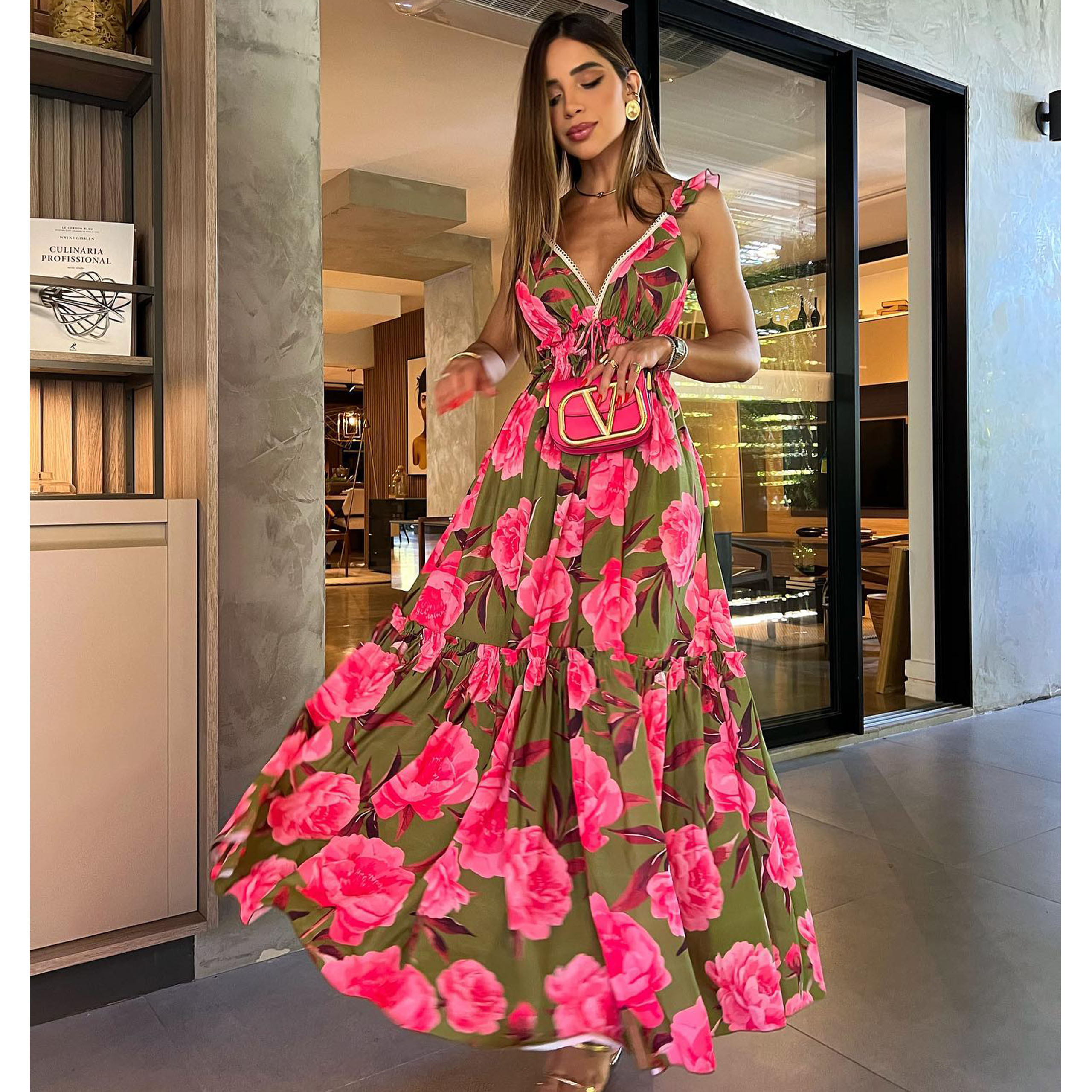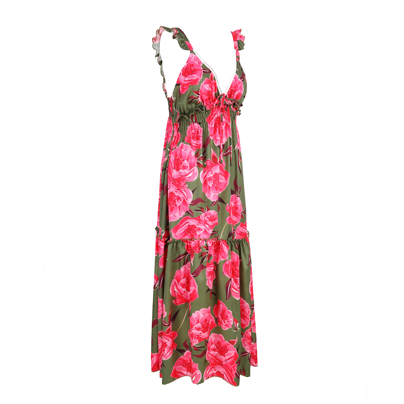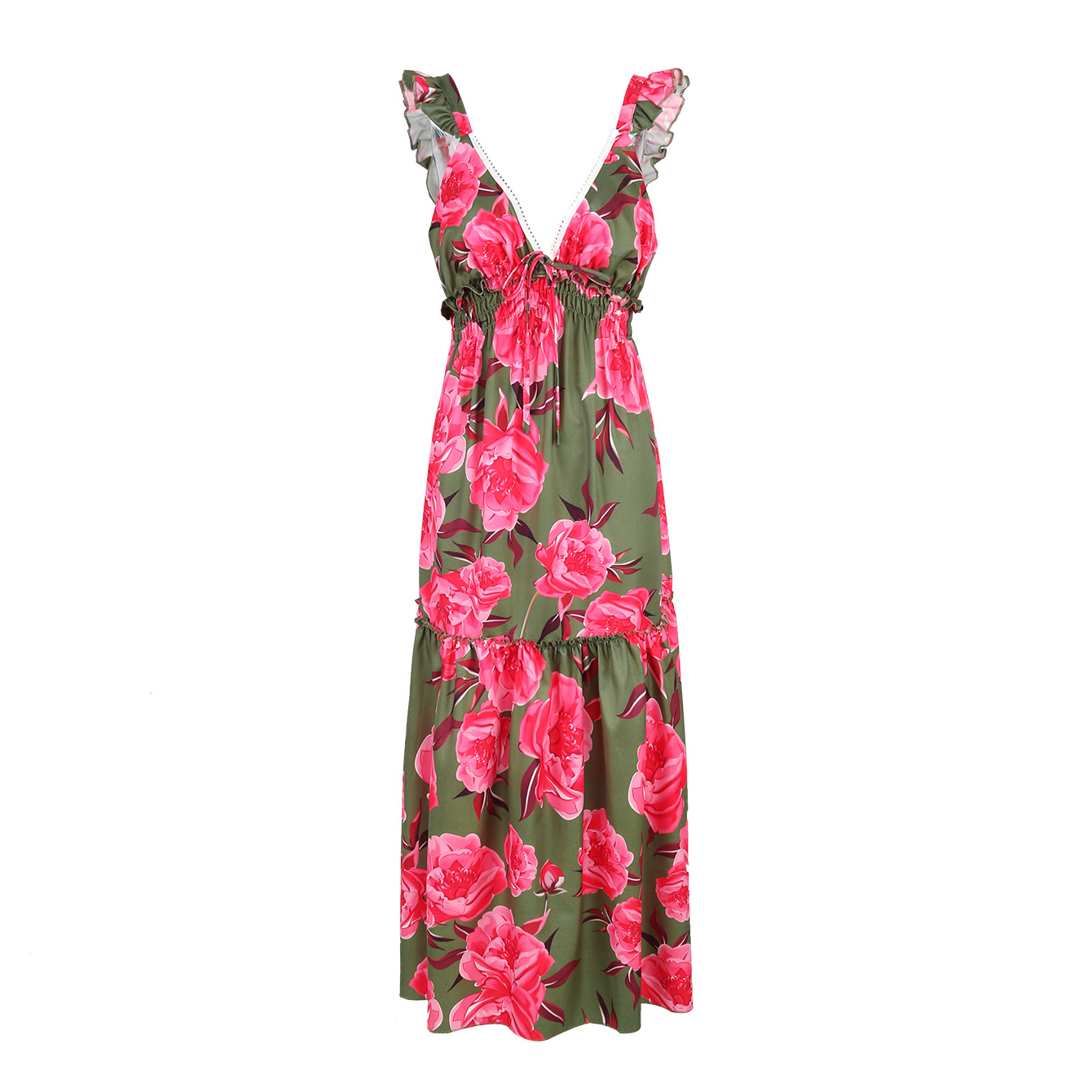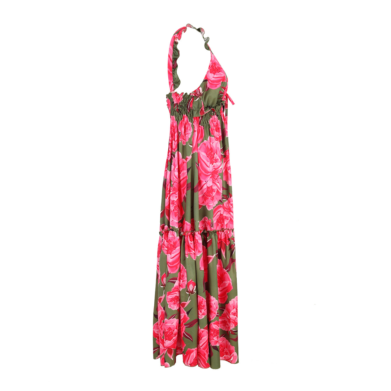 Ruffle Printed Cut Out Maxi Dress