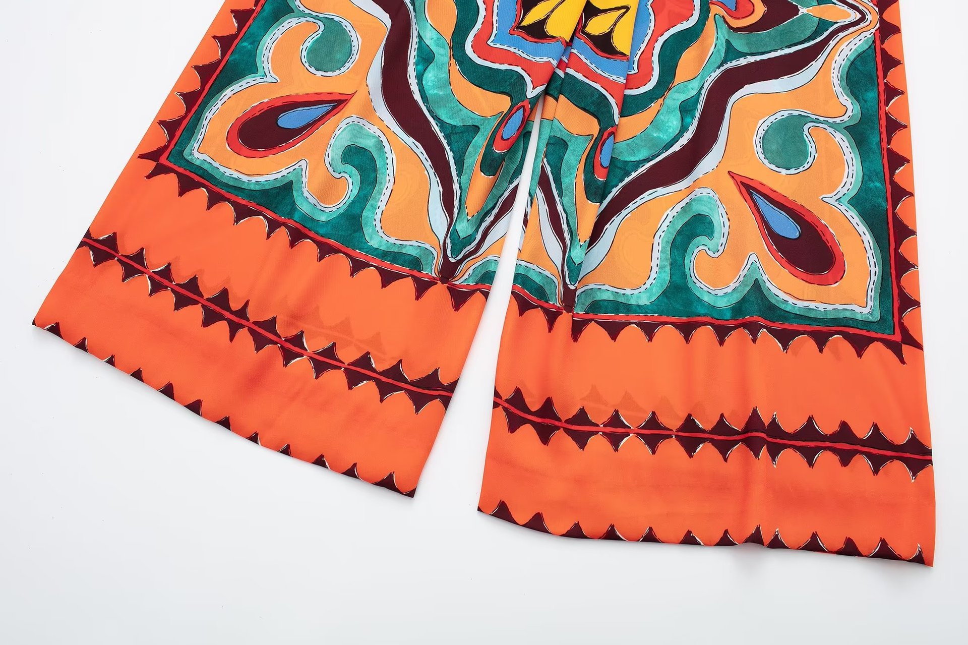V Neck Classic Majolica Series Pattern Print One Piece Swimsuit and Pants or Shorts