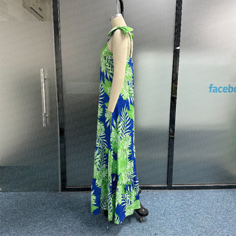 Bowknot Cut Out Printed Maxi Dress
