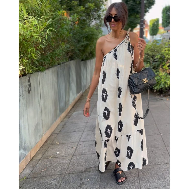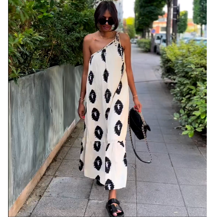 Ethnic One Shoulder Printed Dress
