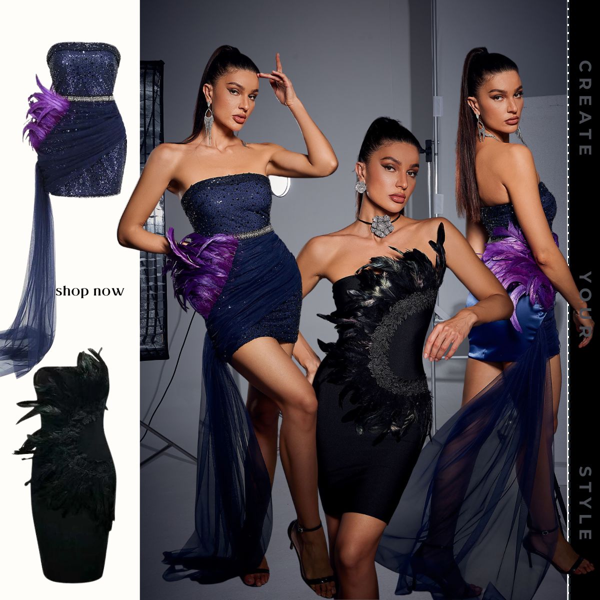 Bandeau Feathers Bandage Dress