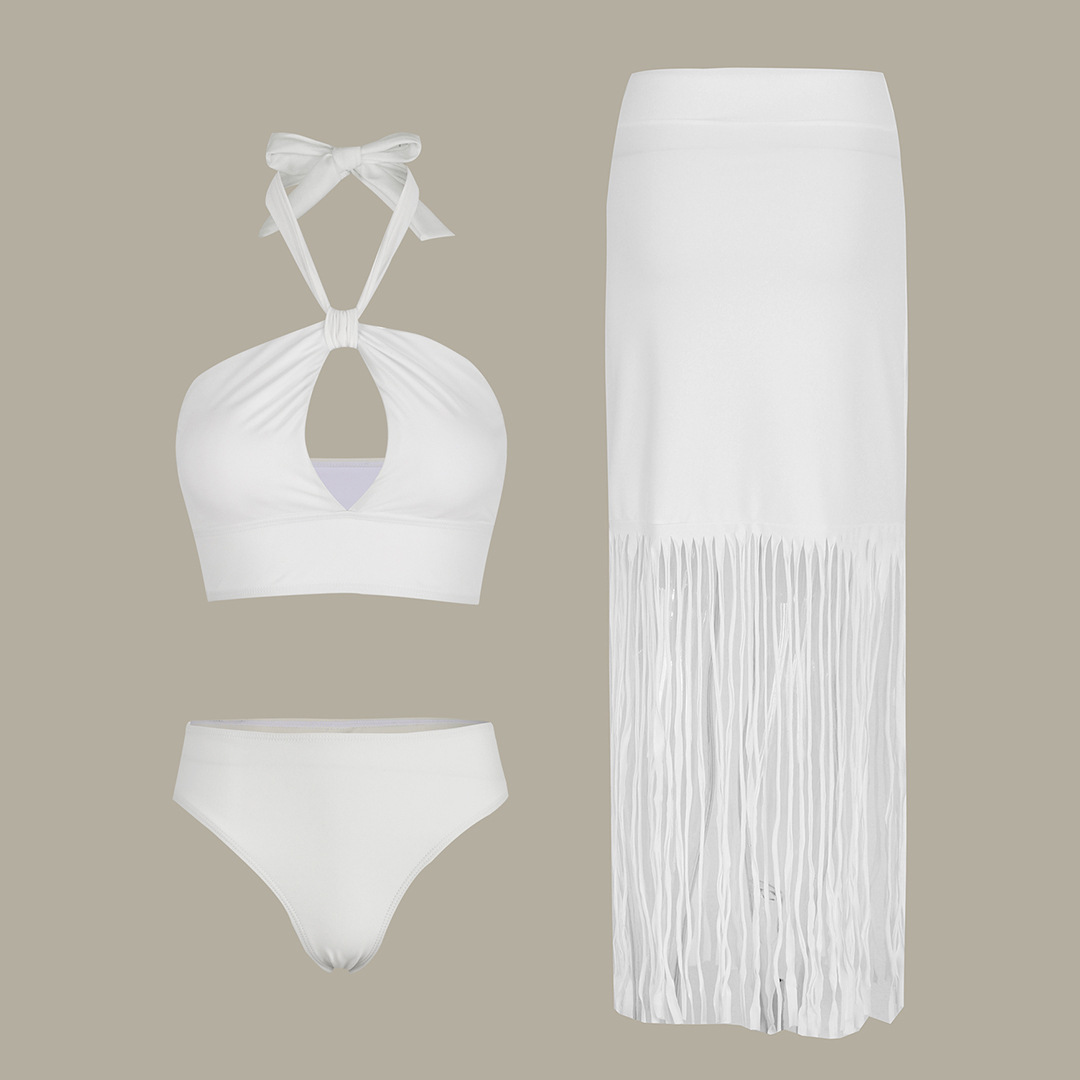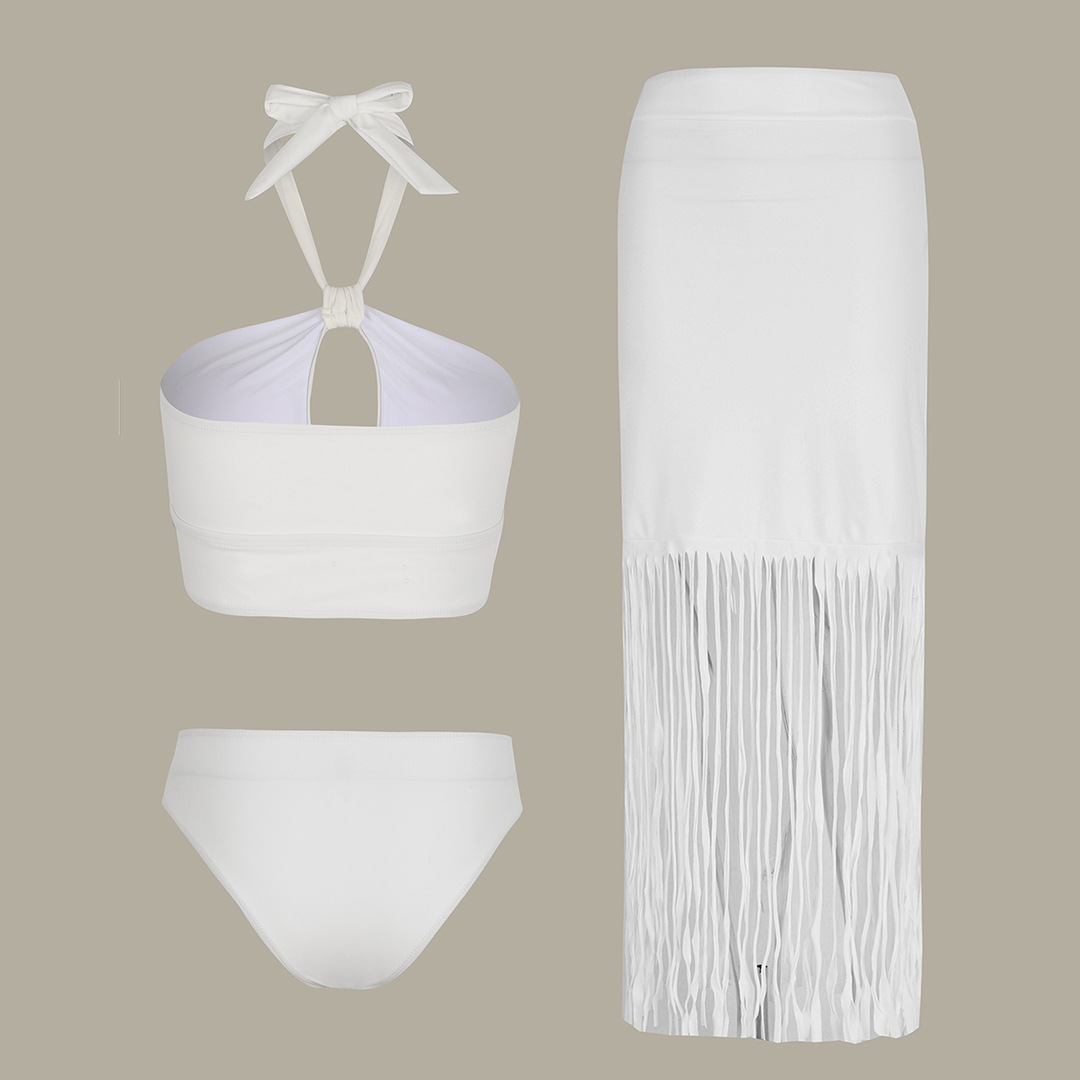 Tassel Solid Color Bikini Swimsuit and Sarong