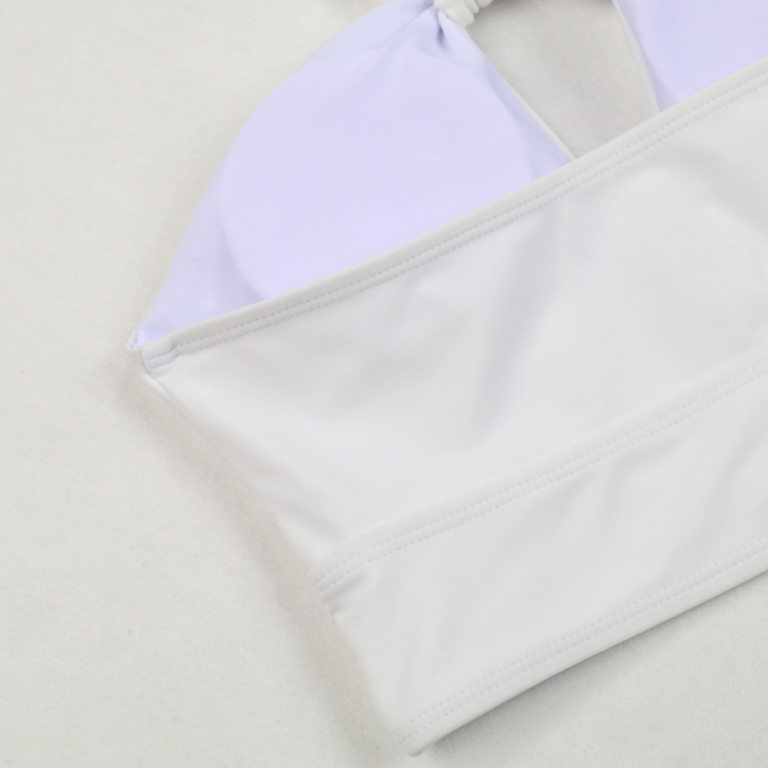 Laser White Hollow Out One Piece Swimsuit and Skirt