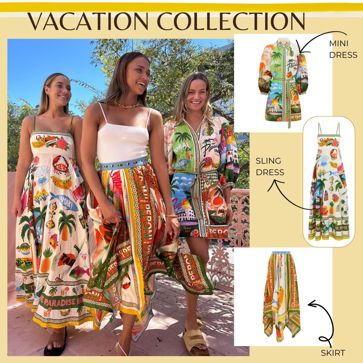 Vacation Graffiti Printed Sling Dress