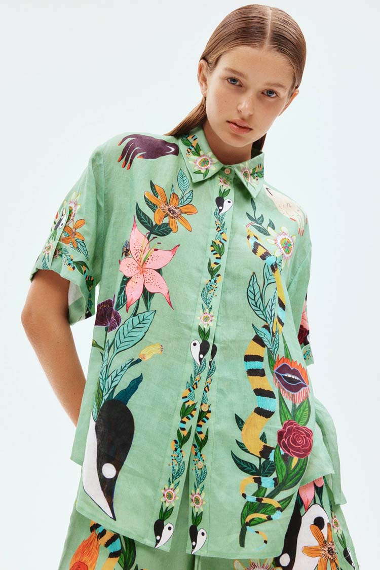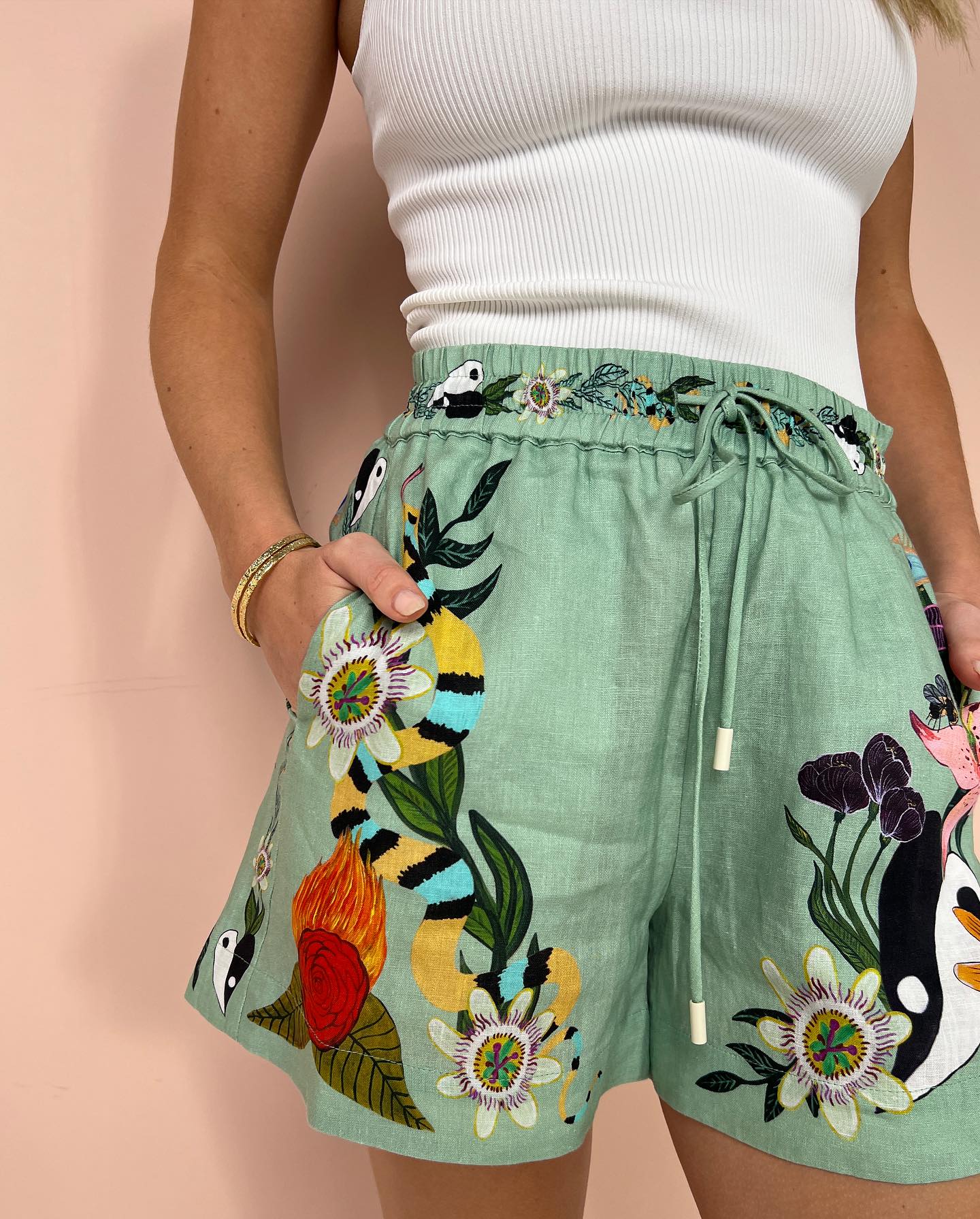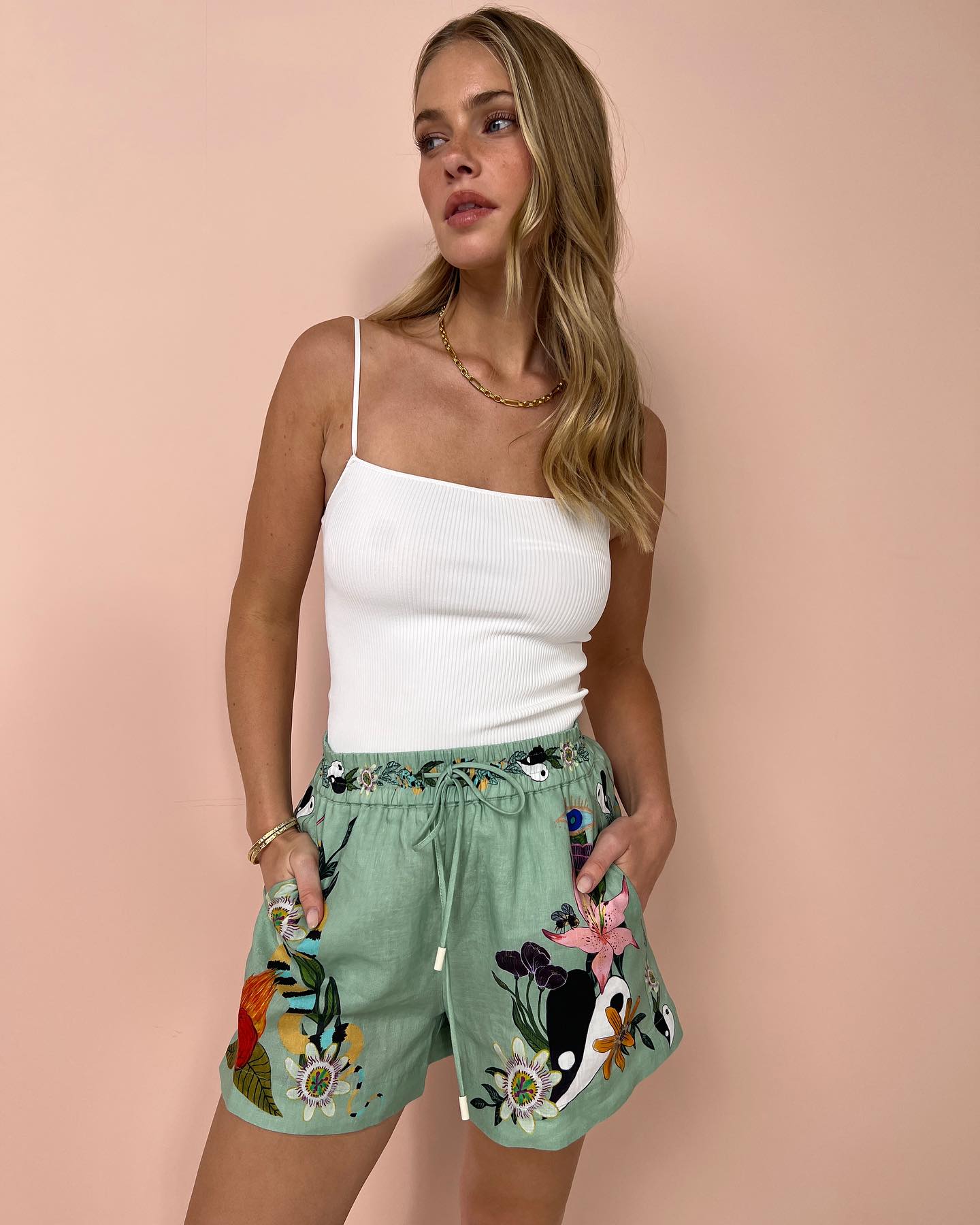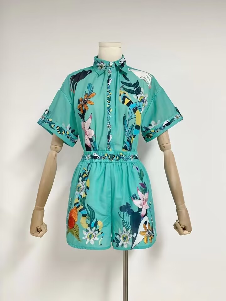 Sling Classic Majolica Series Pattern Print One Piece Swimsuit and Skirt or Shorts