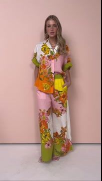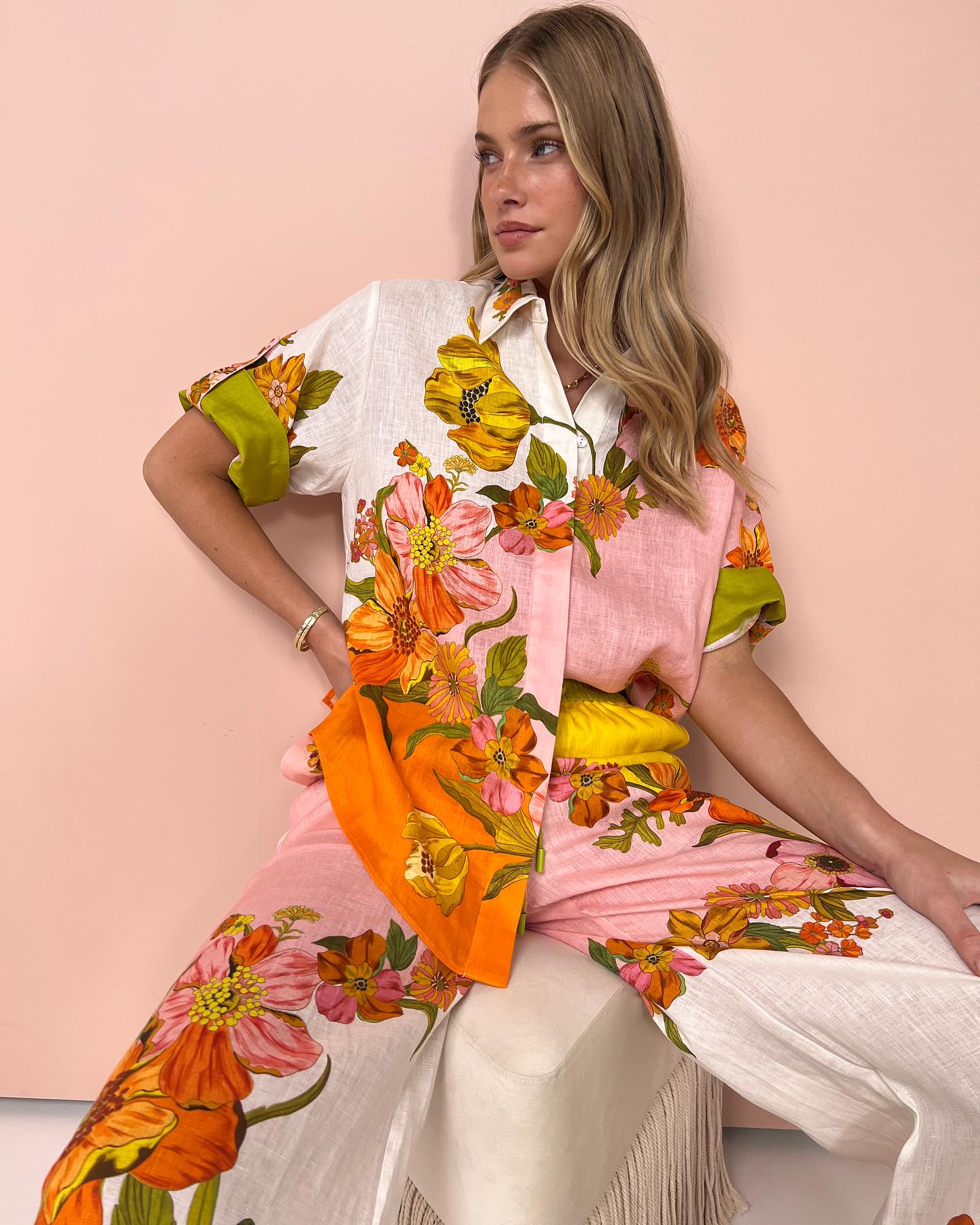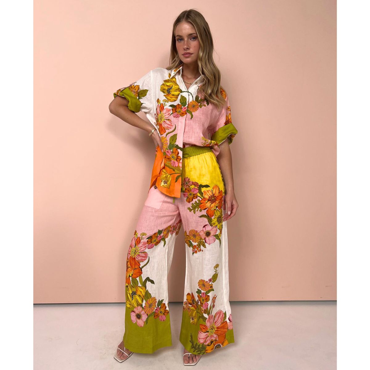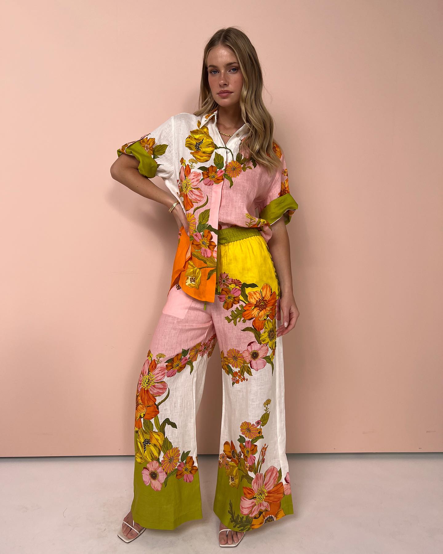 Color Block Short Sleeve Casual Printed Shirt and Pants