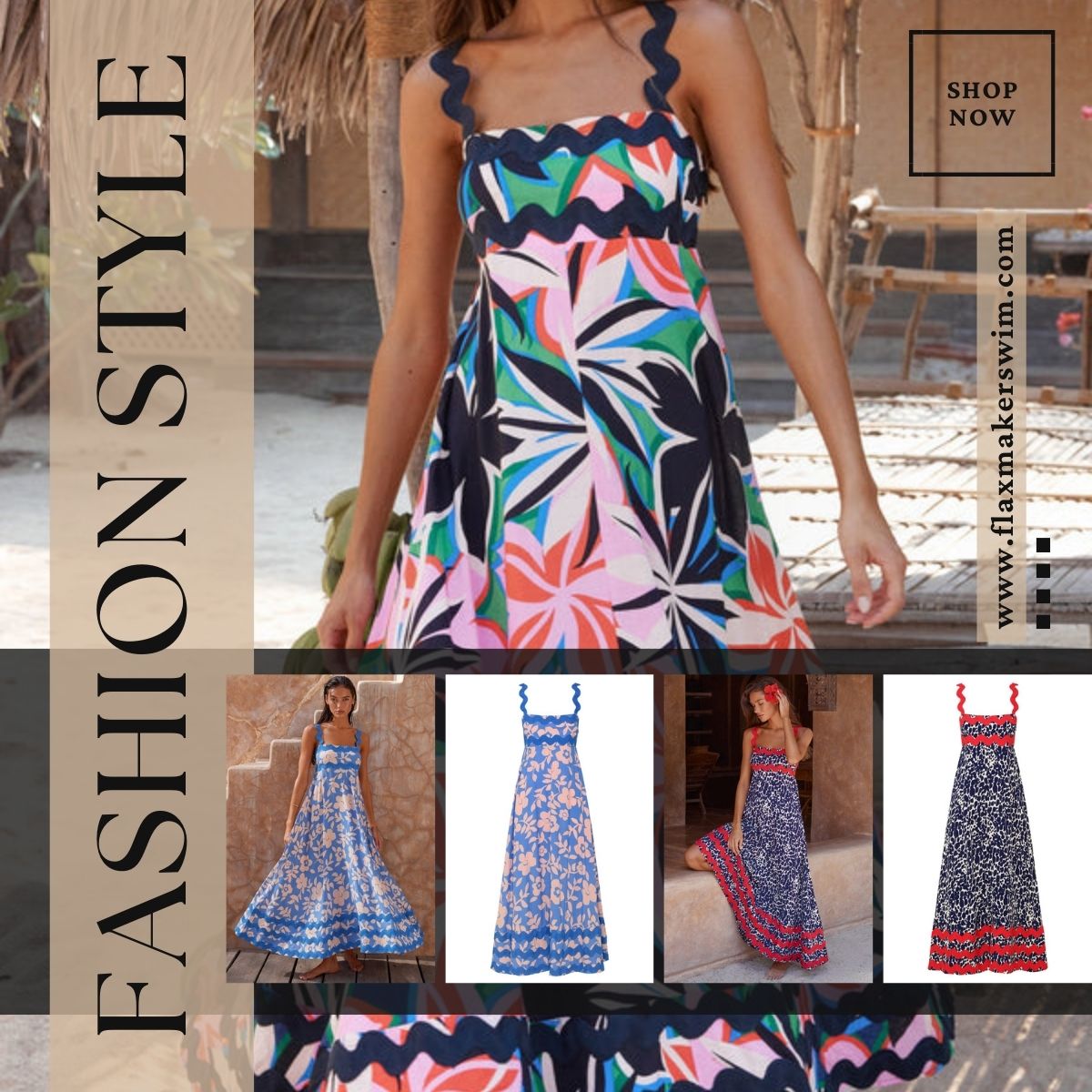 Floral Printed Wave Bandeau Fashion Maxi Dress