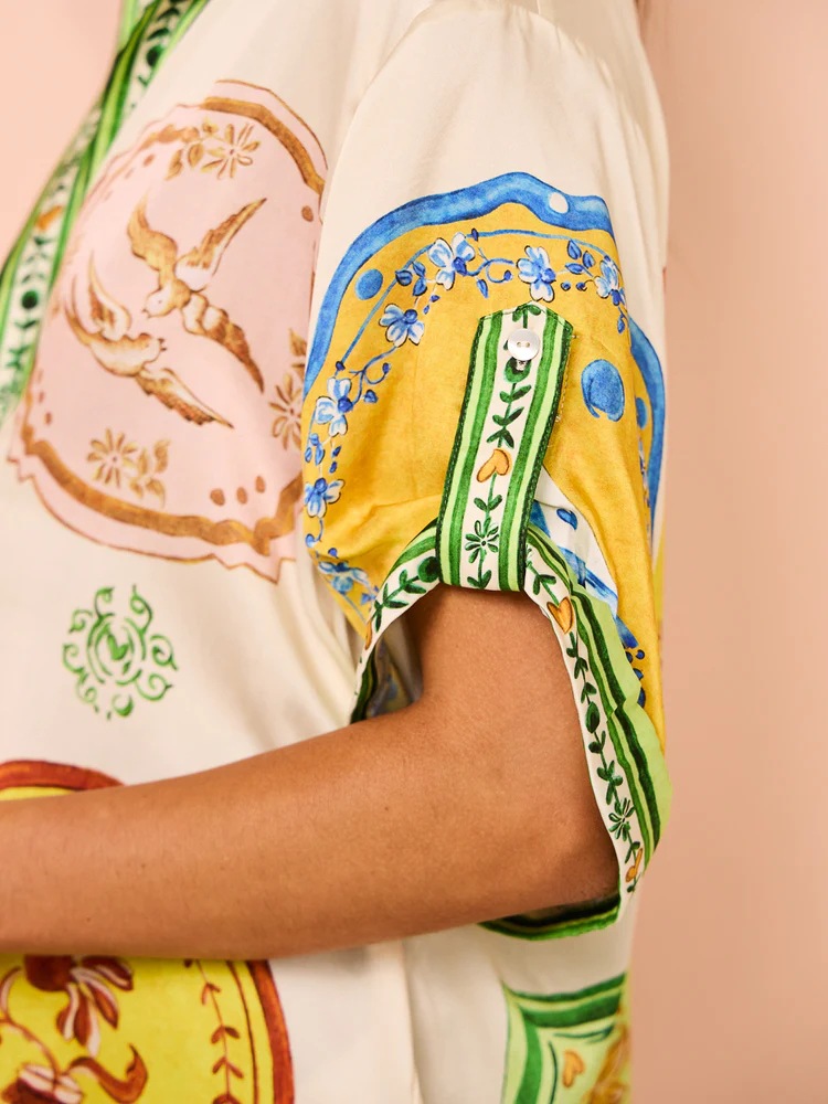 Sling Classic Majolica Series Pattern Print One Piece Swimsuit and Skirt or Shorts