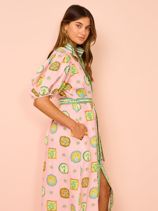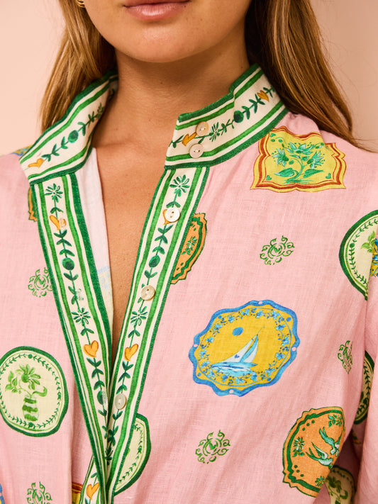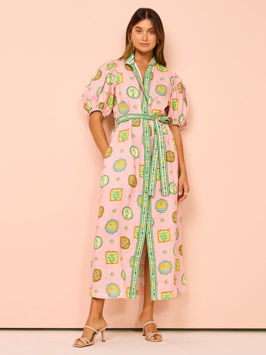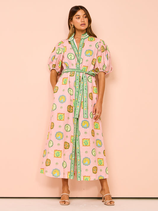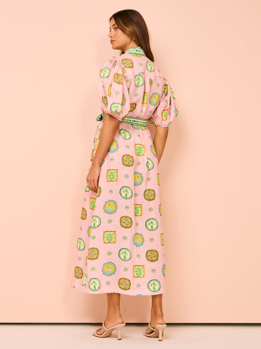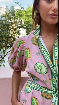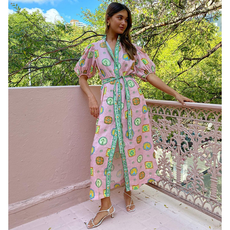 Short Slevees Lace up Graffiti Printed Dress