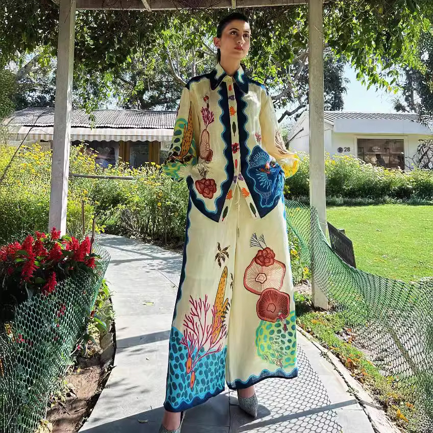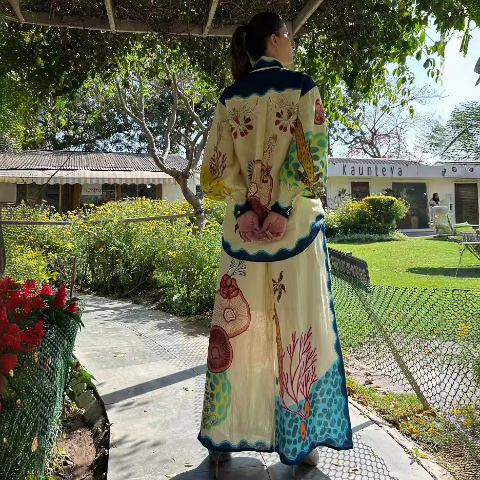 Graffiti Printed Long Sleeve Shirt and Pants Set
