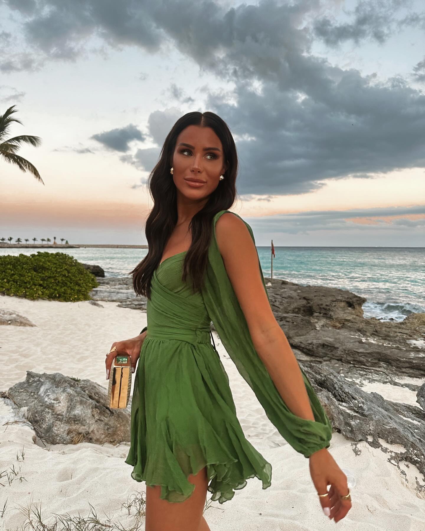 Long-sleeved Retro Green Grapes Print One Piece Swimsuit and Skirt