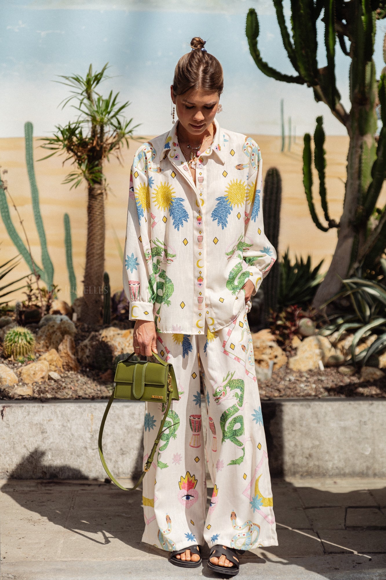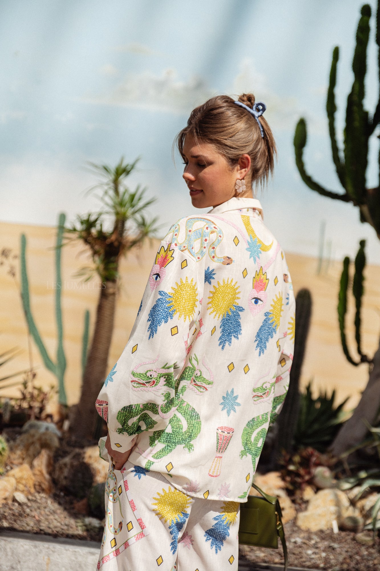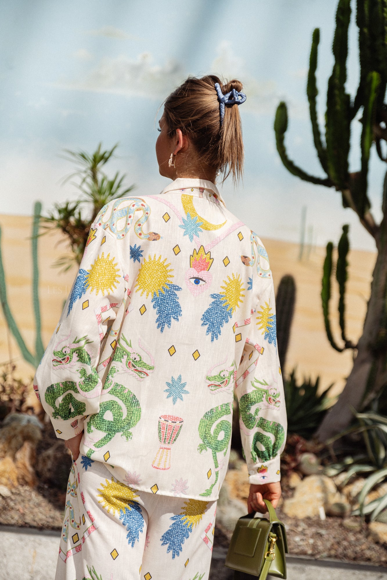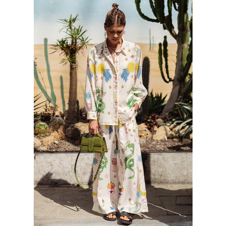 Graffiti Printed Long Sleeve Shirt and Pants Set