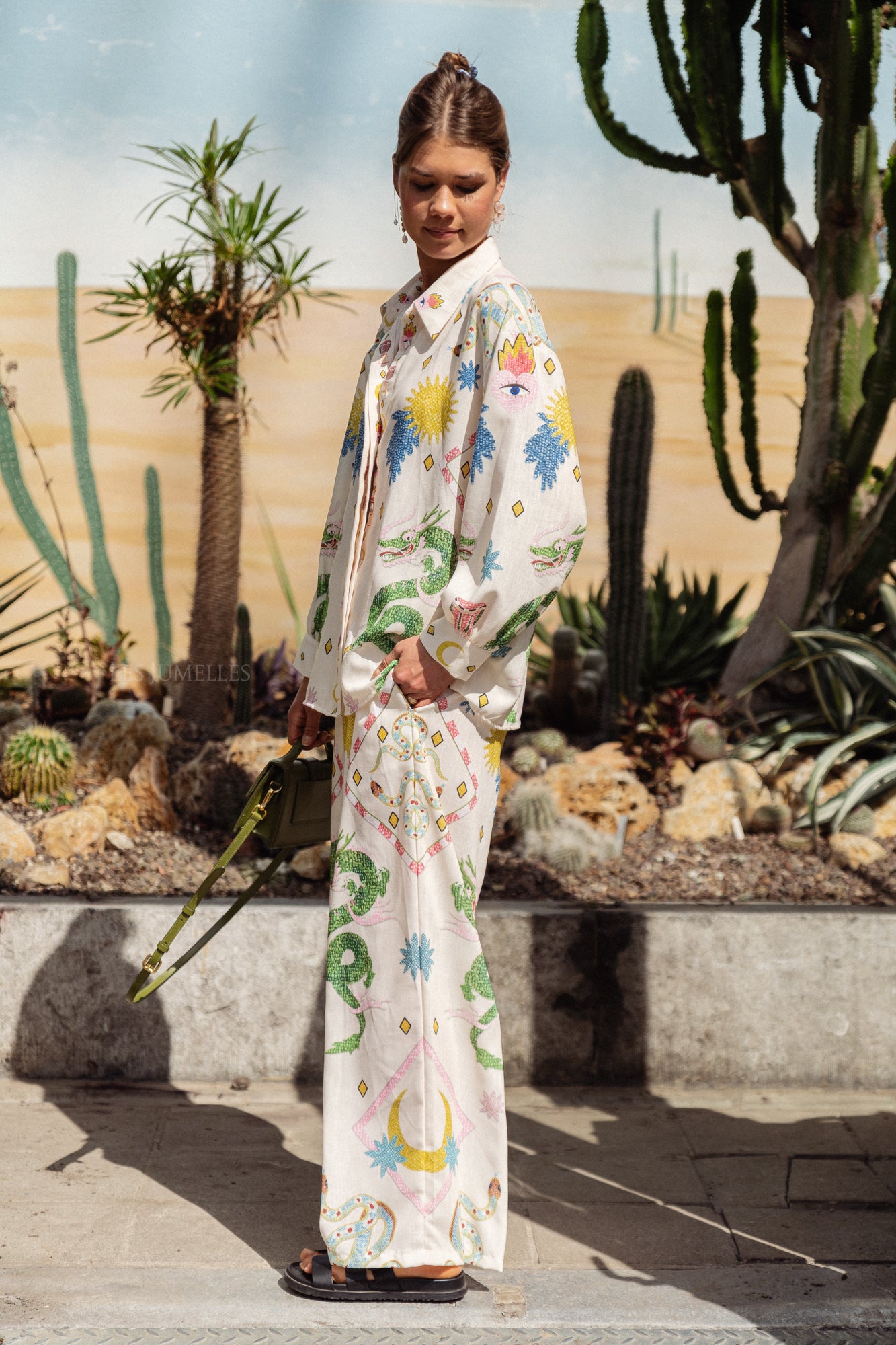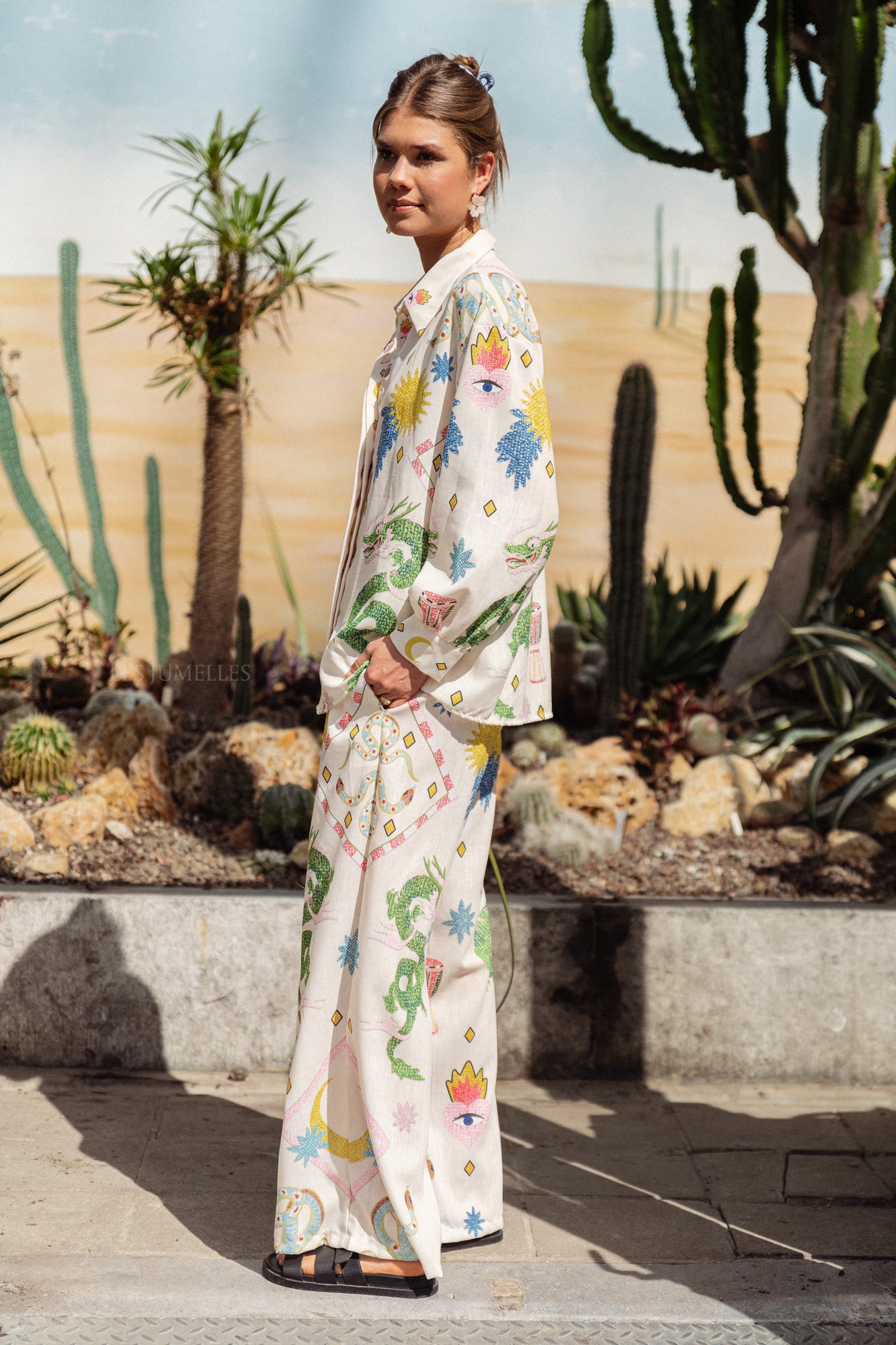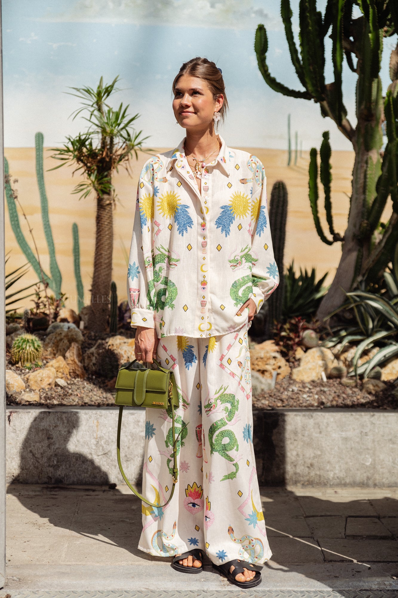 Graffiti Printed Long Sleeve Shirt and Pants Set