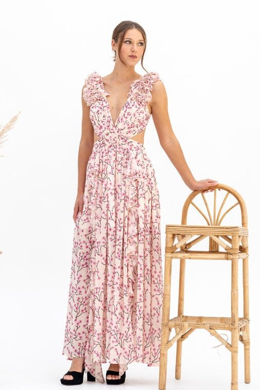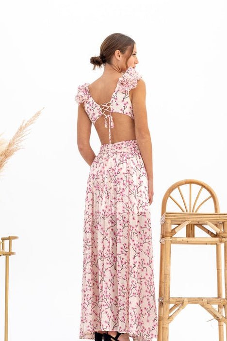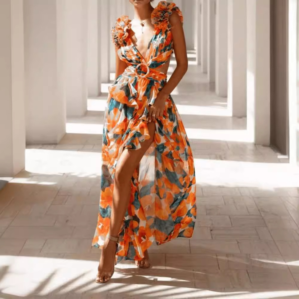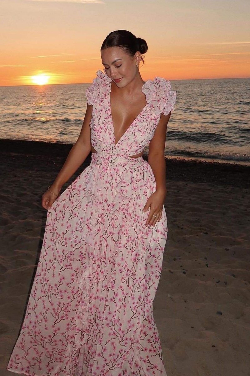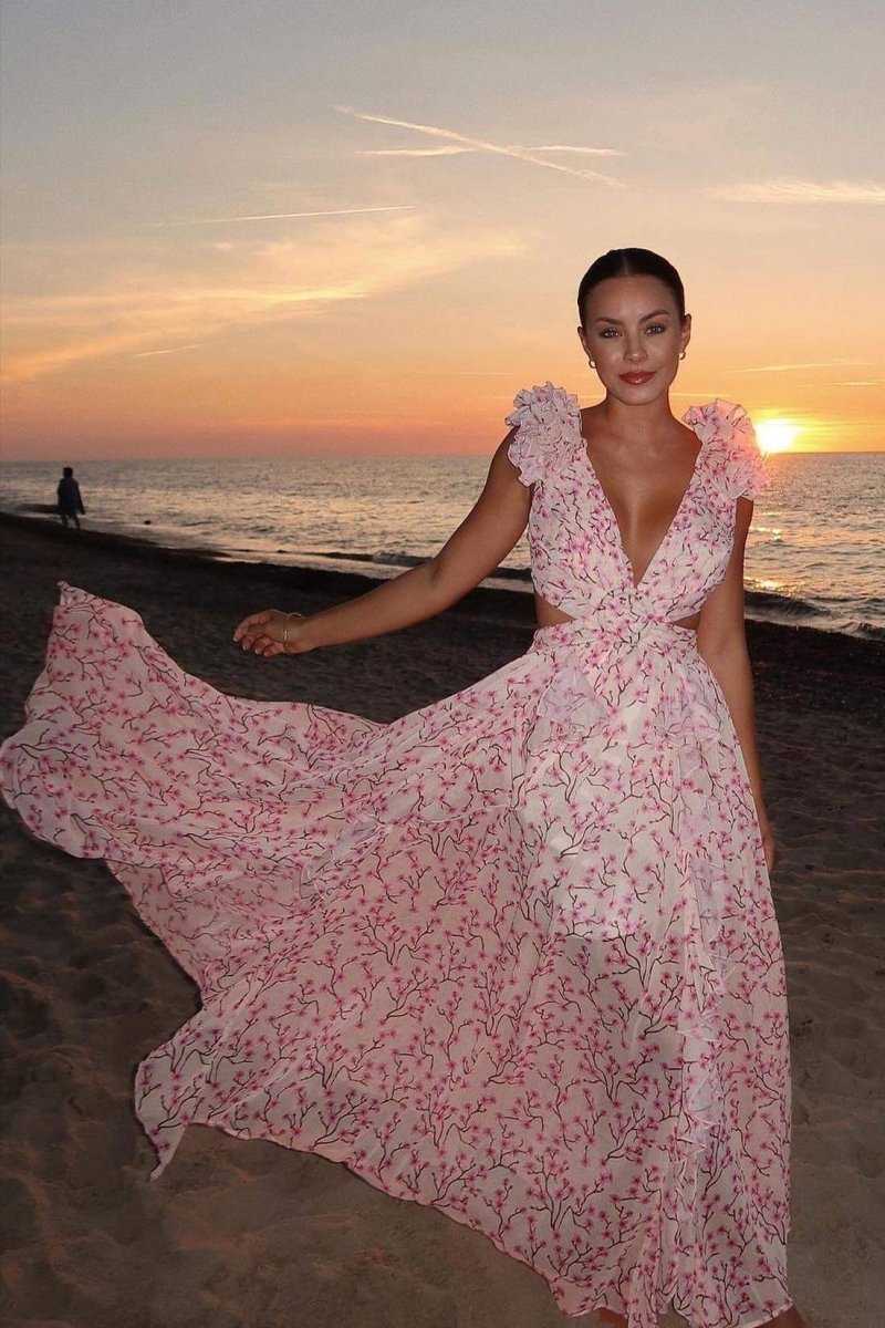 Backless V Neck Printed Dress