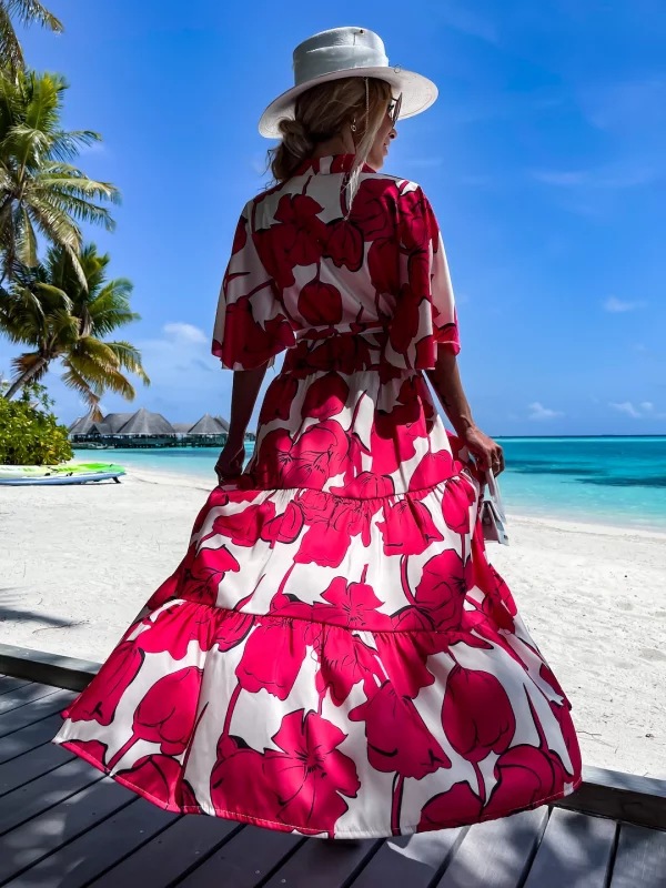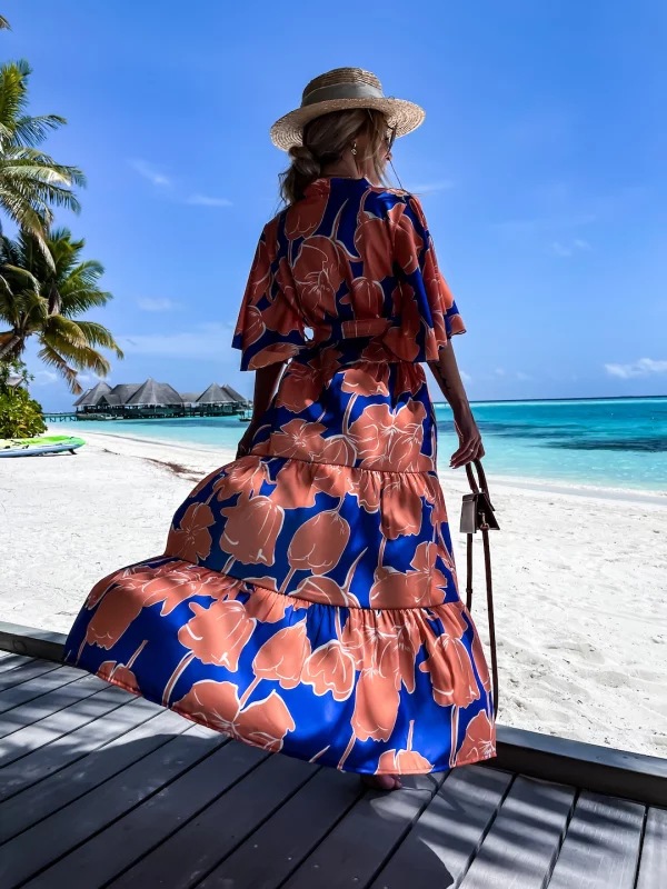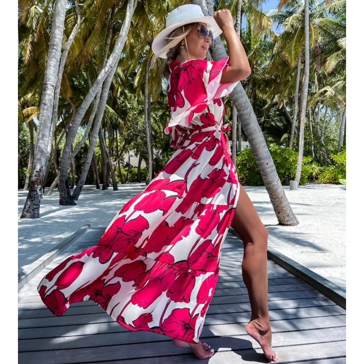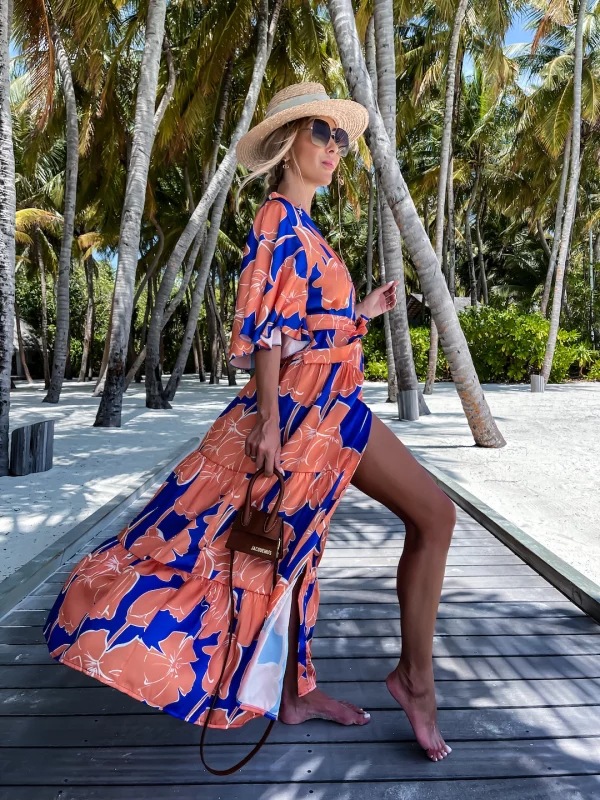 Blossom Printed Lace Up Beach Dress