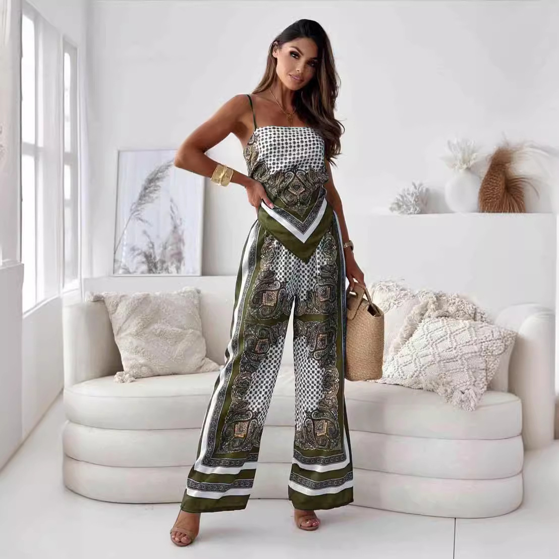 Fashion Backless Bandeau Top and Pants Set