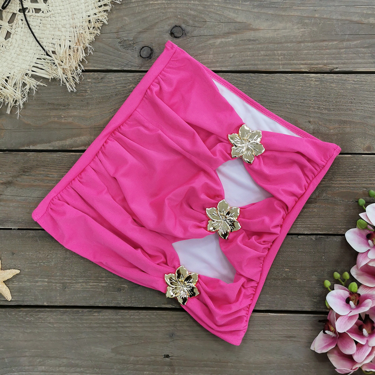Bandeau Ruffled Orchid Print One Piece Swimsuit and Skirt
