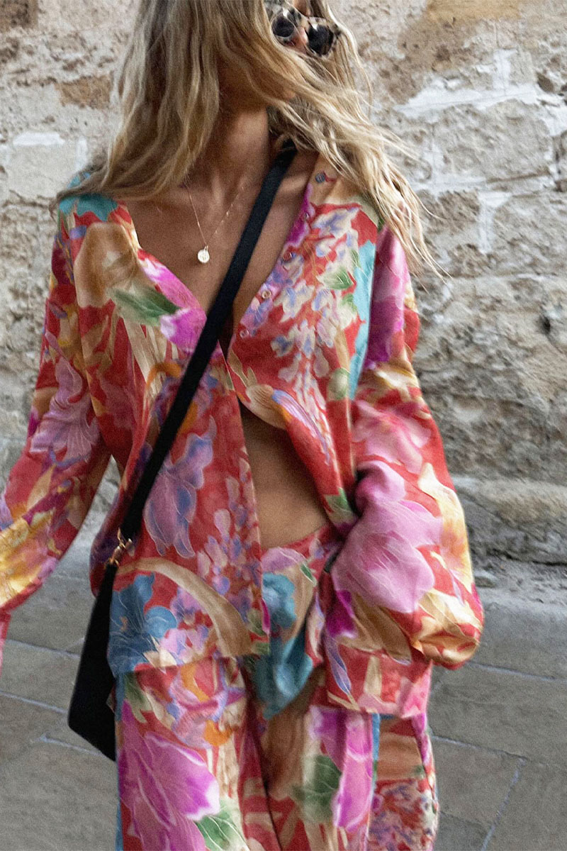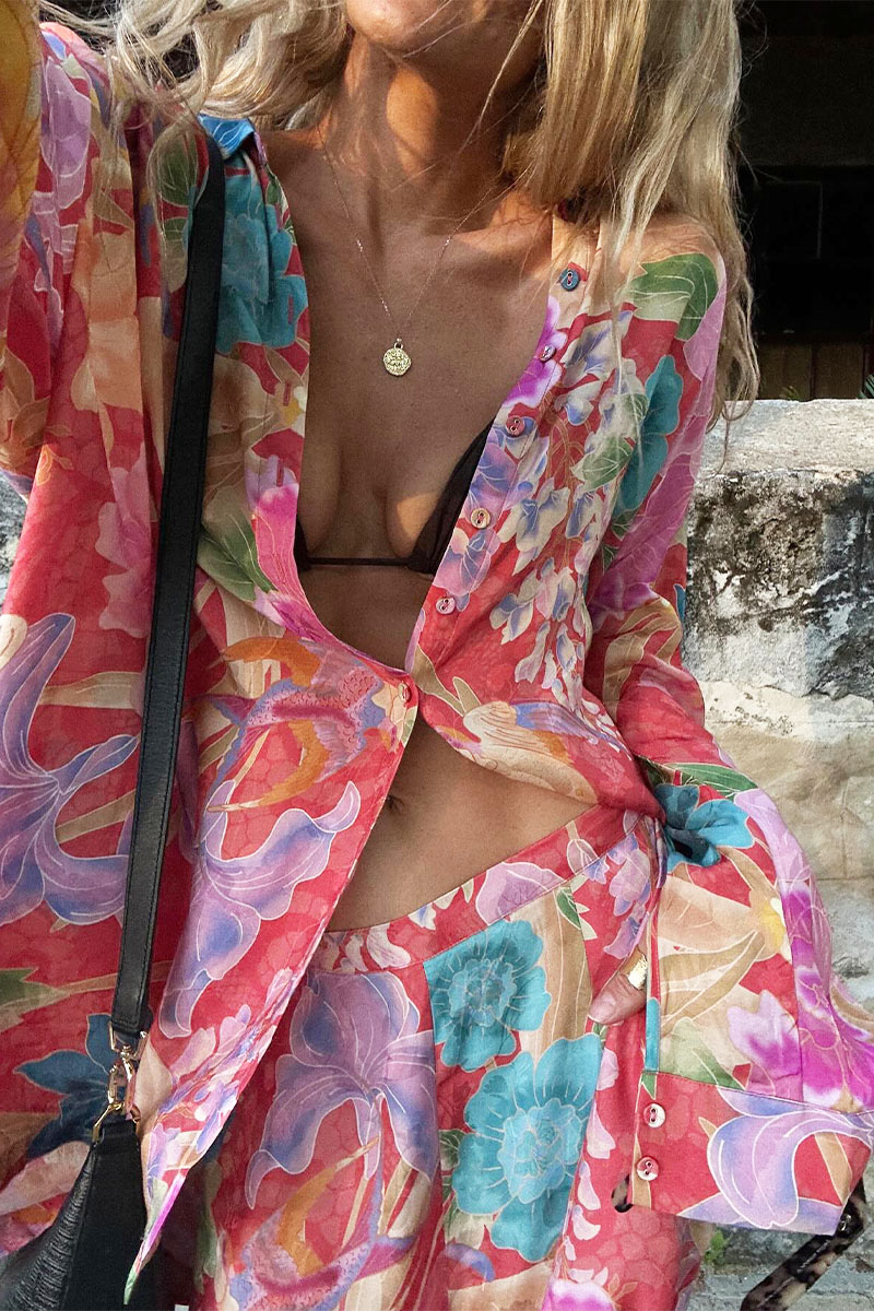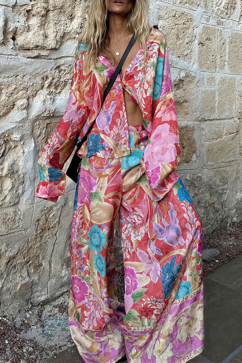 Vacation Flower Print Shirt and Pants Set