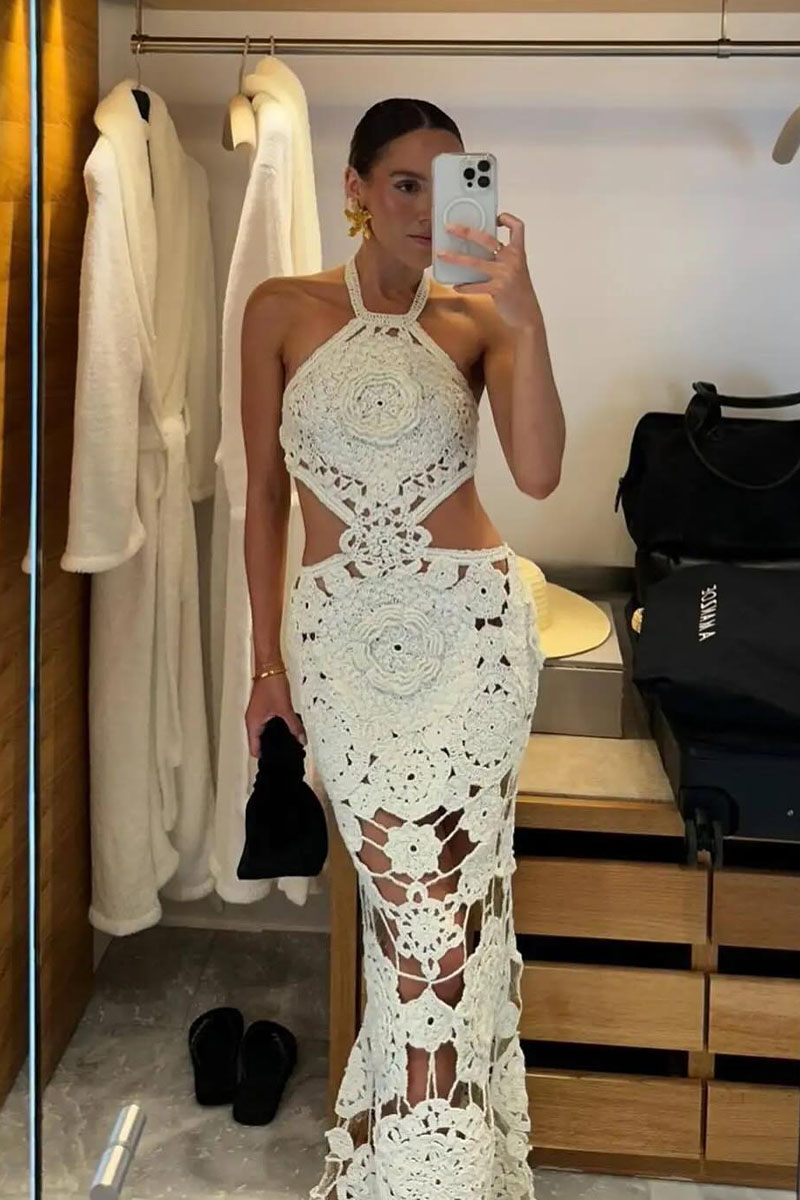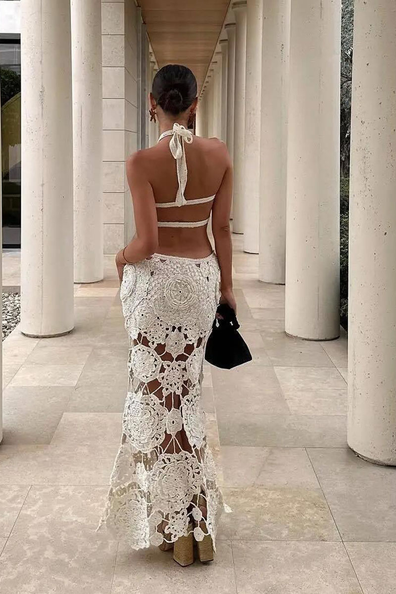 V Neck Solid Color Laser Cutting Flower One Piece Swimsuit and Skirt