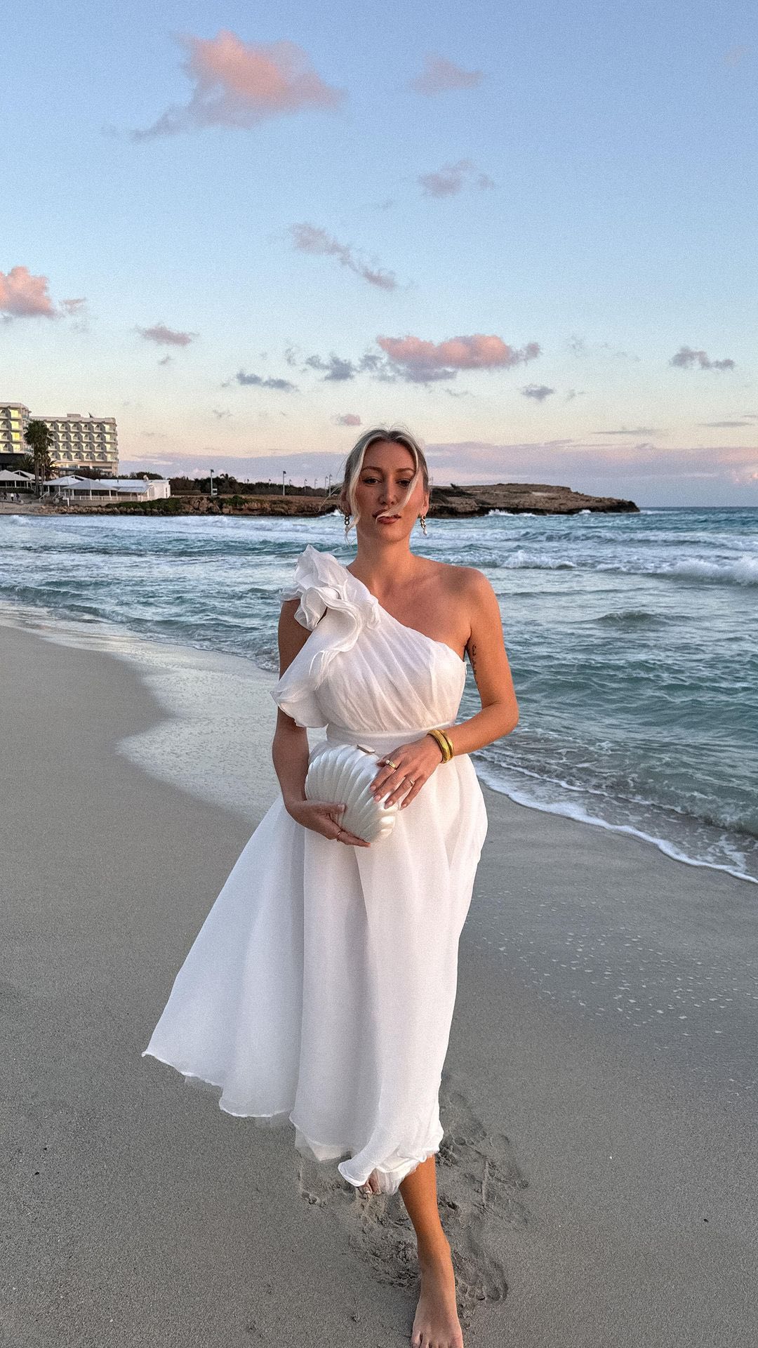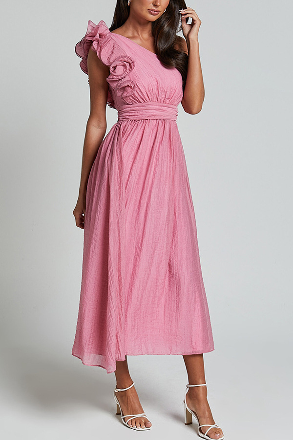 Oblique Shoulder Ruffle Dress