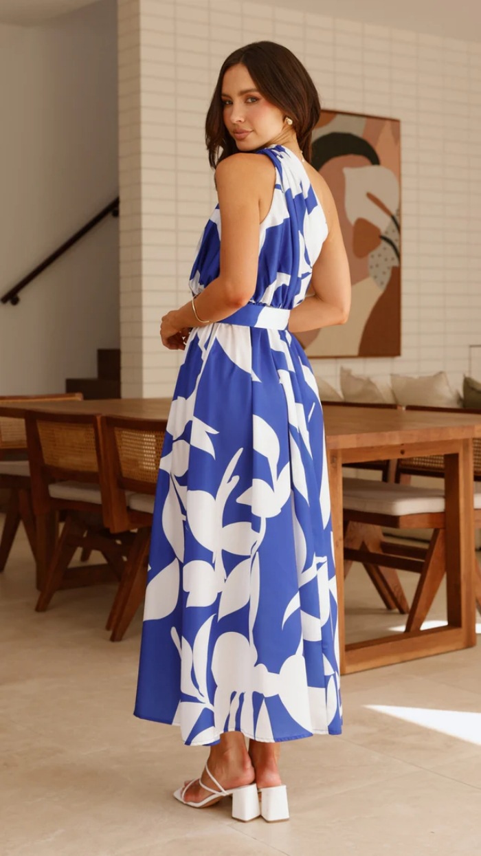Oblique Shoulder Printed Dress