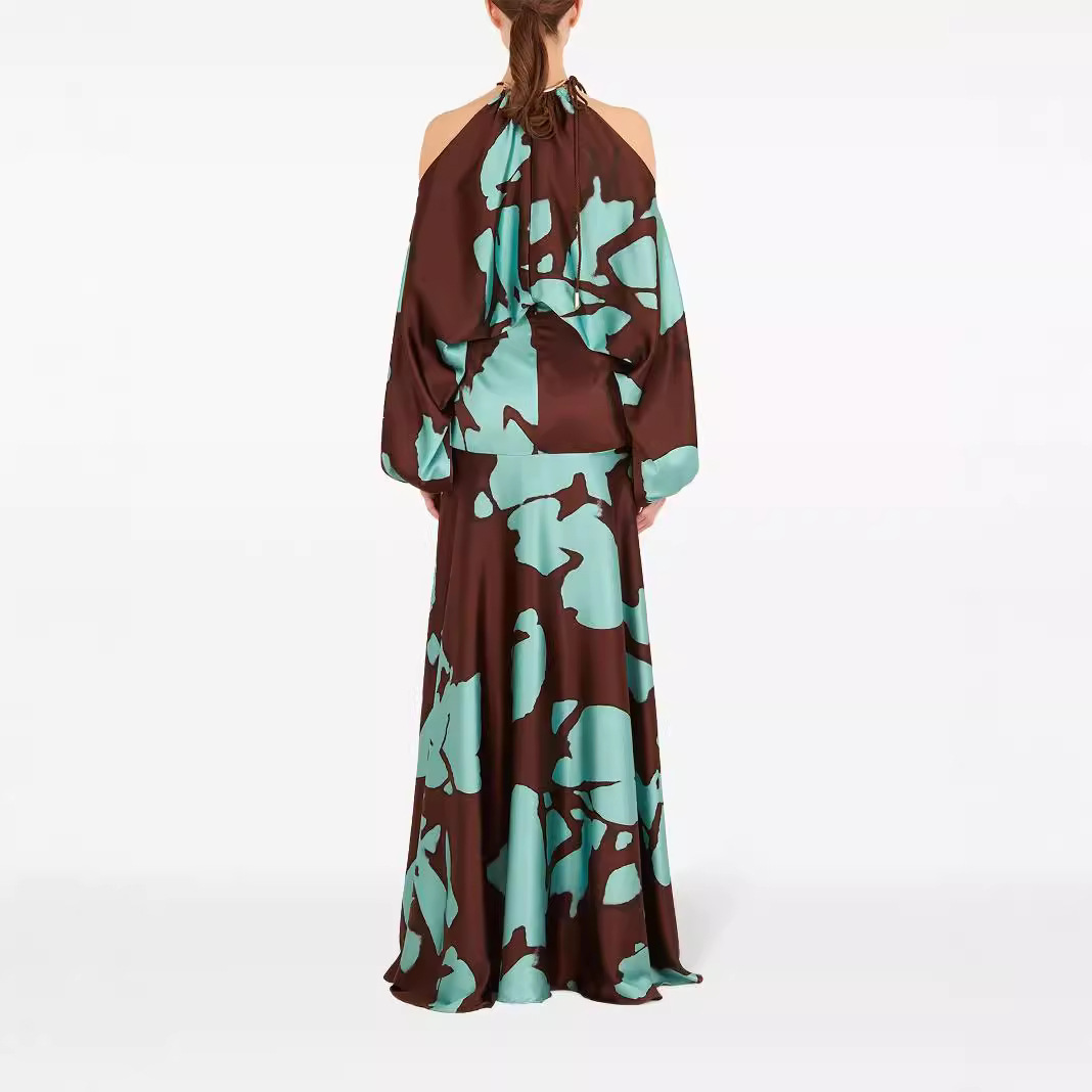 Long-sleeved Retro Green Grapes Print One Piece Swimsuit and Skirt
