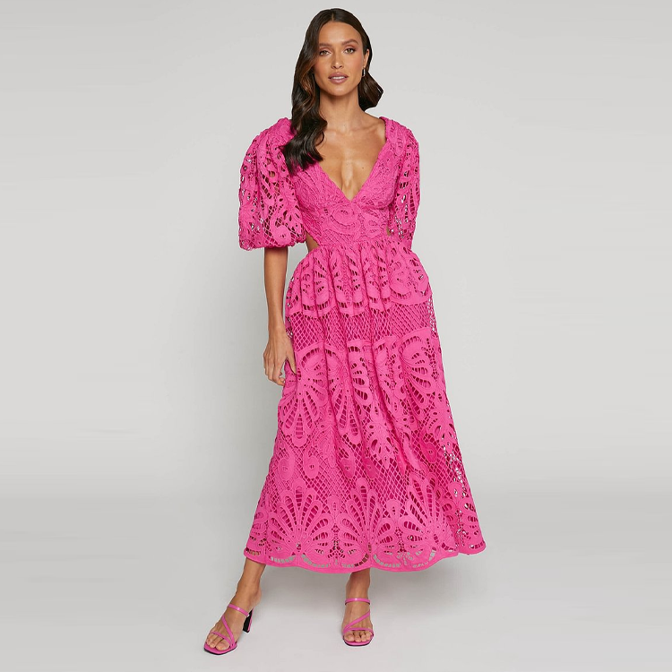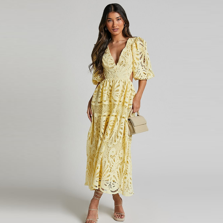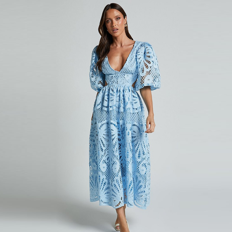 V Neck Solid Color Laser Cutting Flower One Piece Swimsuit and Skirt
