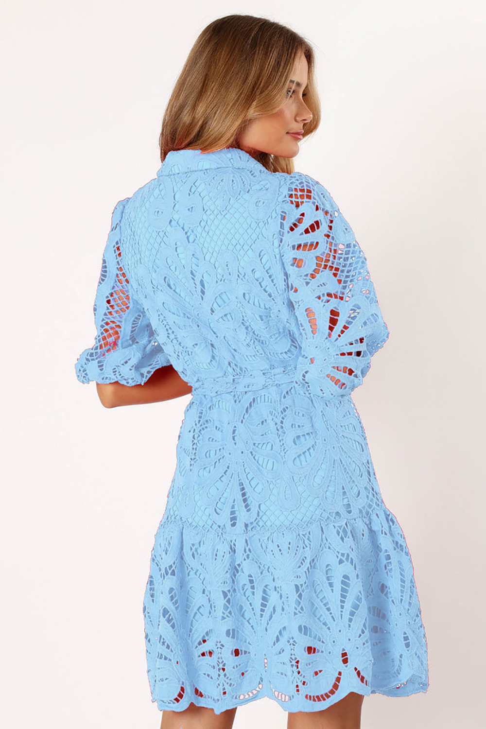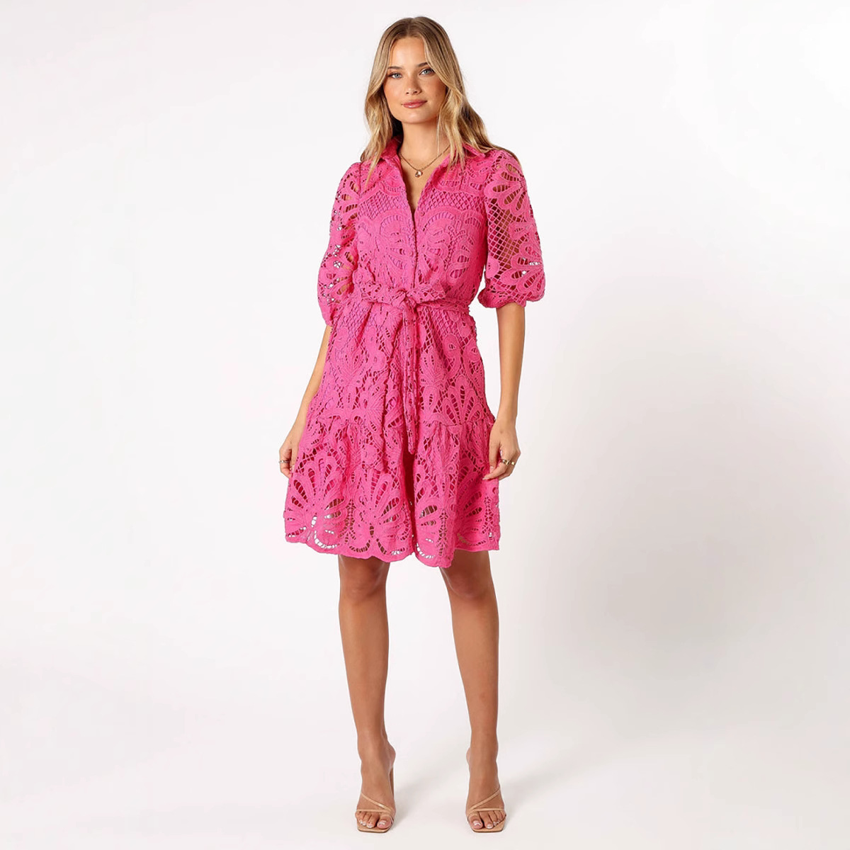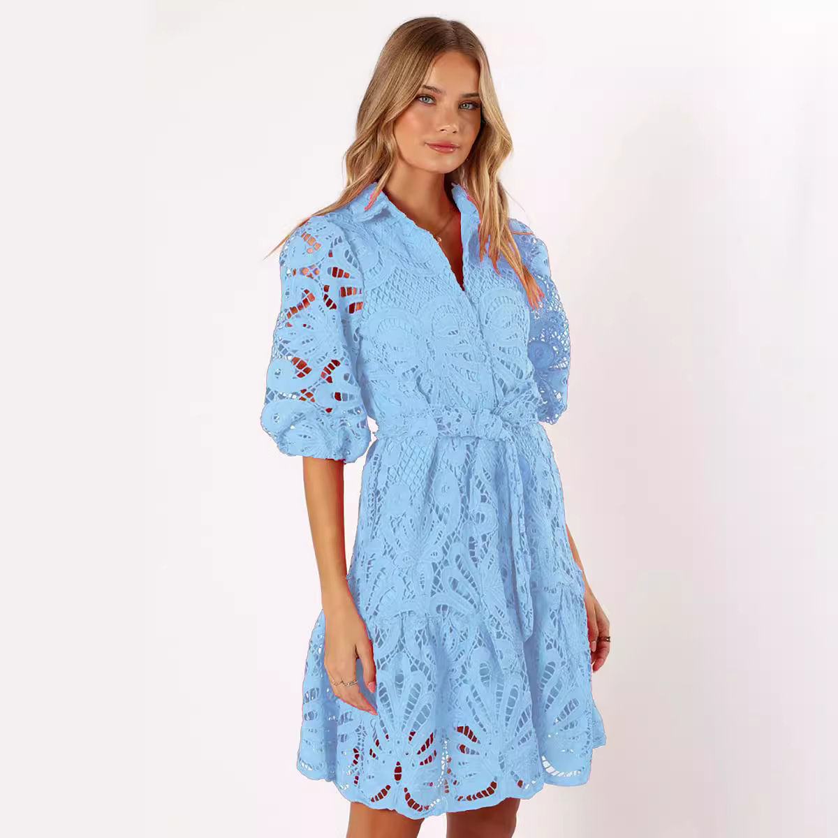 V Neck Solid Color Laser Cutting Flower One Piece Swimsuit and Skirt