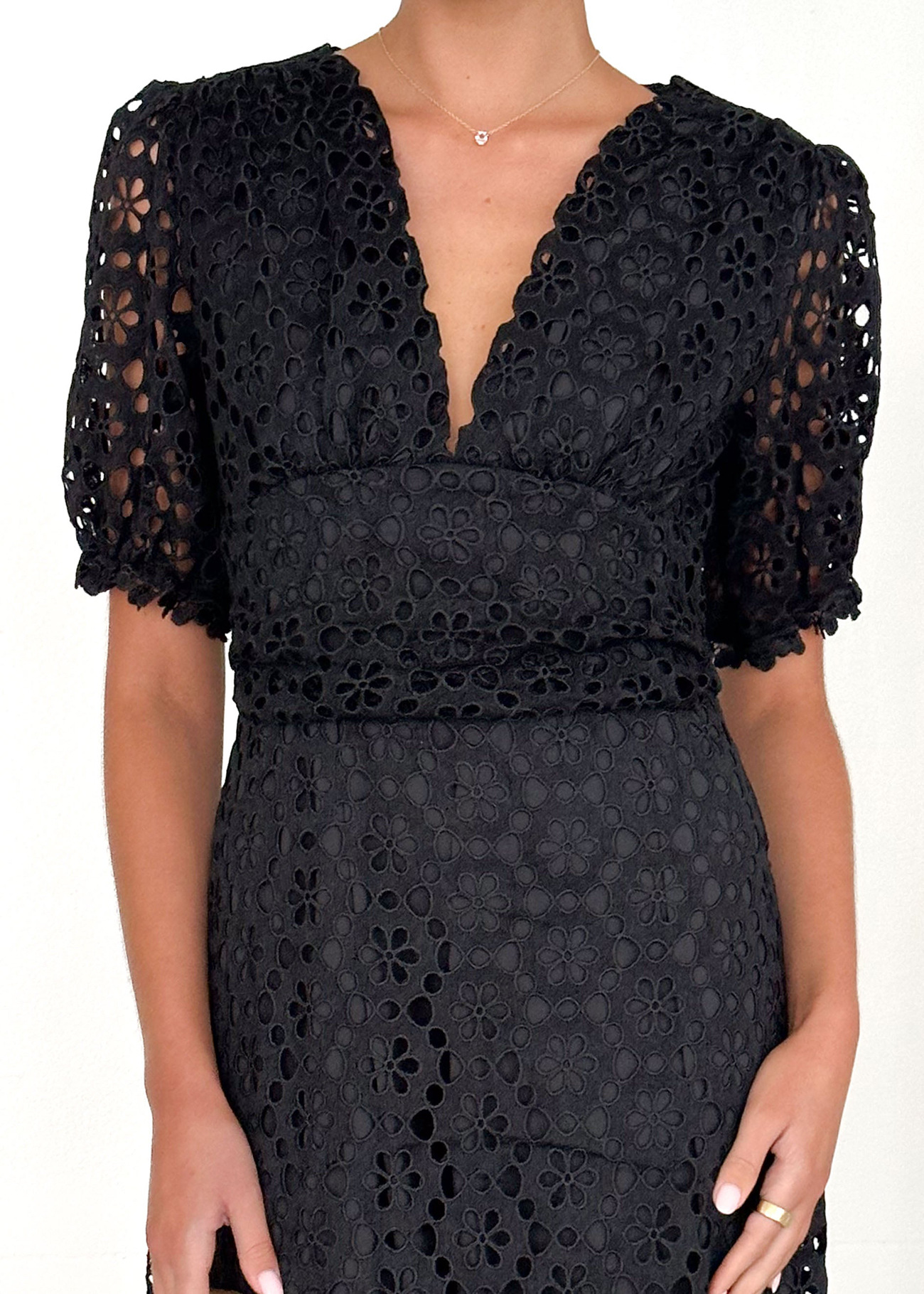 Black Laser Cutting Flower Hollow One Piece Swimsuit and Skirt