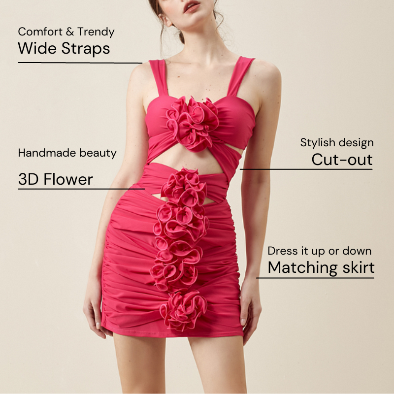 3D Flower Cutout One Piece Swimsuit and Skirt Flaxmaker