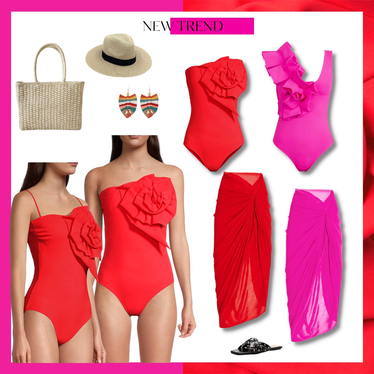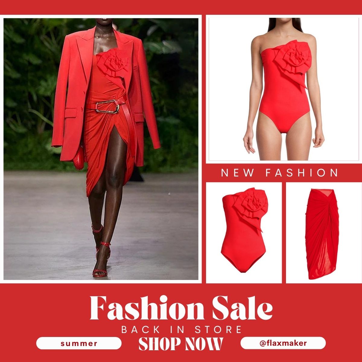 3D Flower Removable Strap Red One Piece Swimsuit and Sarong Flaxmaker