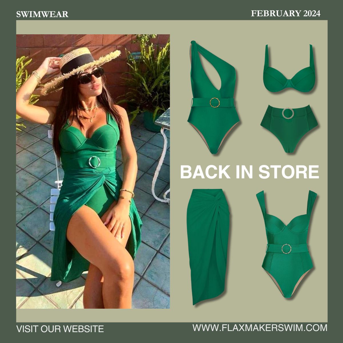 Flaxmaker Emerald Lconic One Shoulder Cut Out Belt One Piece Swimsuit and Sarong
