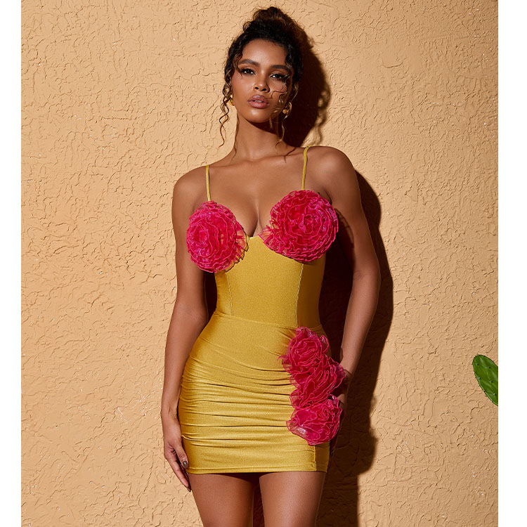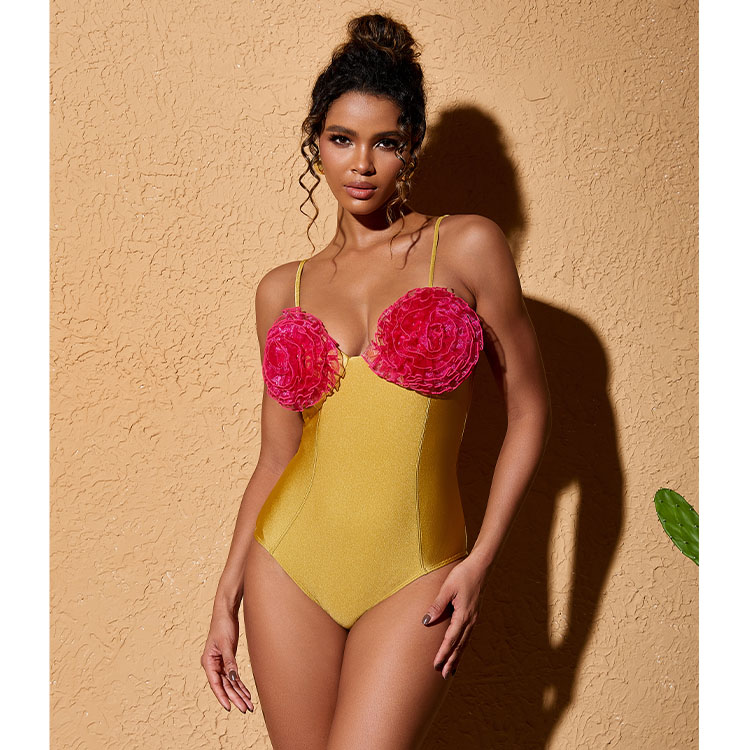 Color Block 3D Flower One Piece Swimsuit and Skirt Flaxmaker