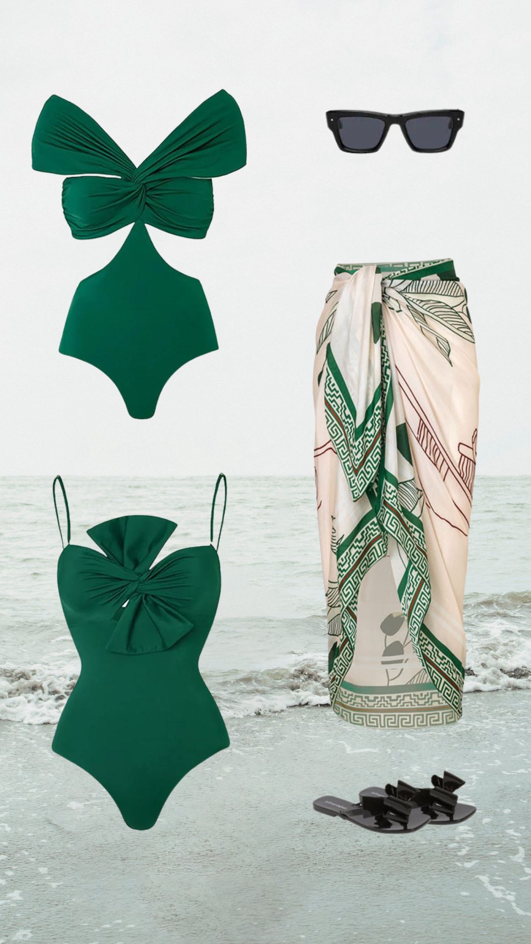 Bow Front One Piece Swimsuit and Sarong Flaxmaker