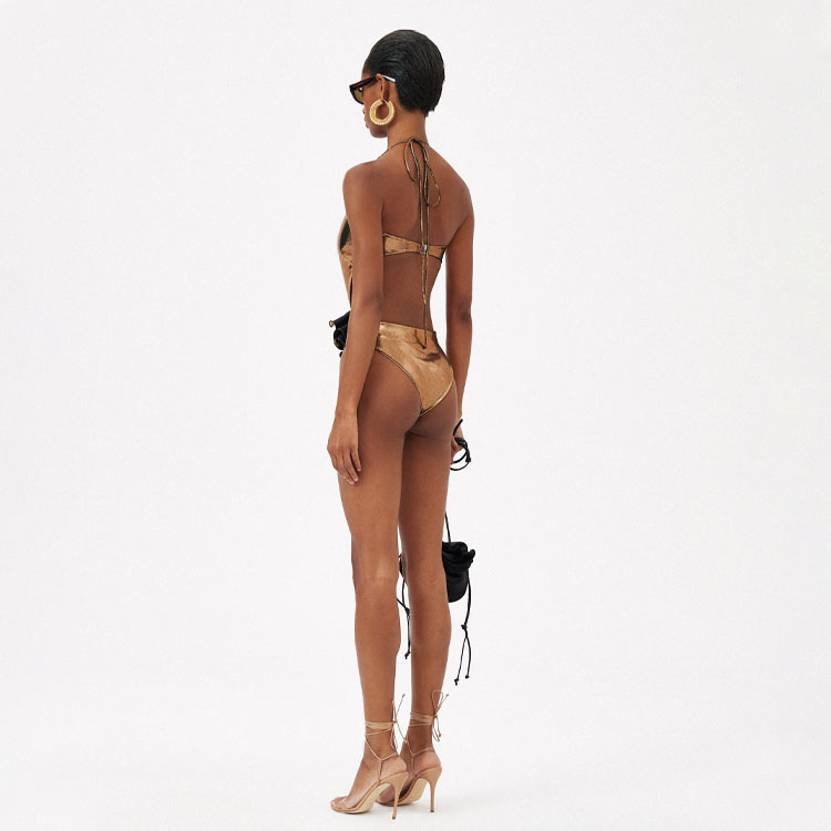 Halter 3D Flower One Piece Swimsuit Flaxmaker