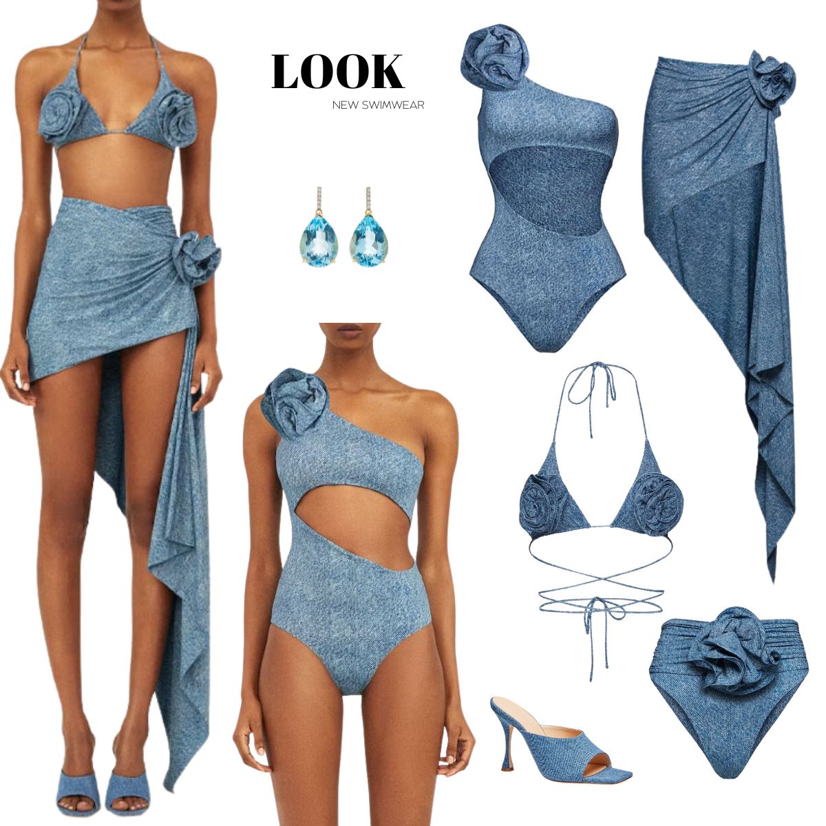 Classic High Waist Flower Denim Print Bikini Swimsuit and Skirt Flaxmaker
