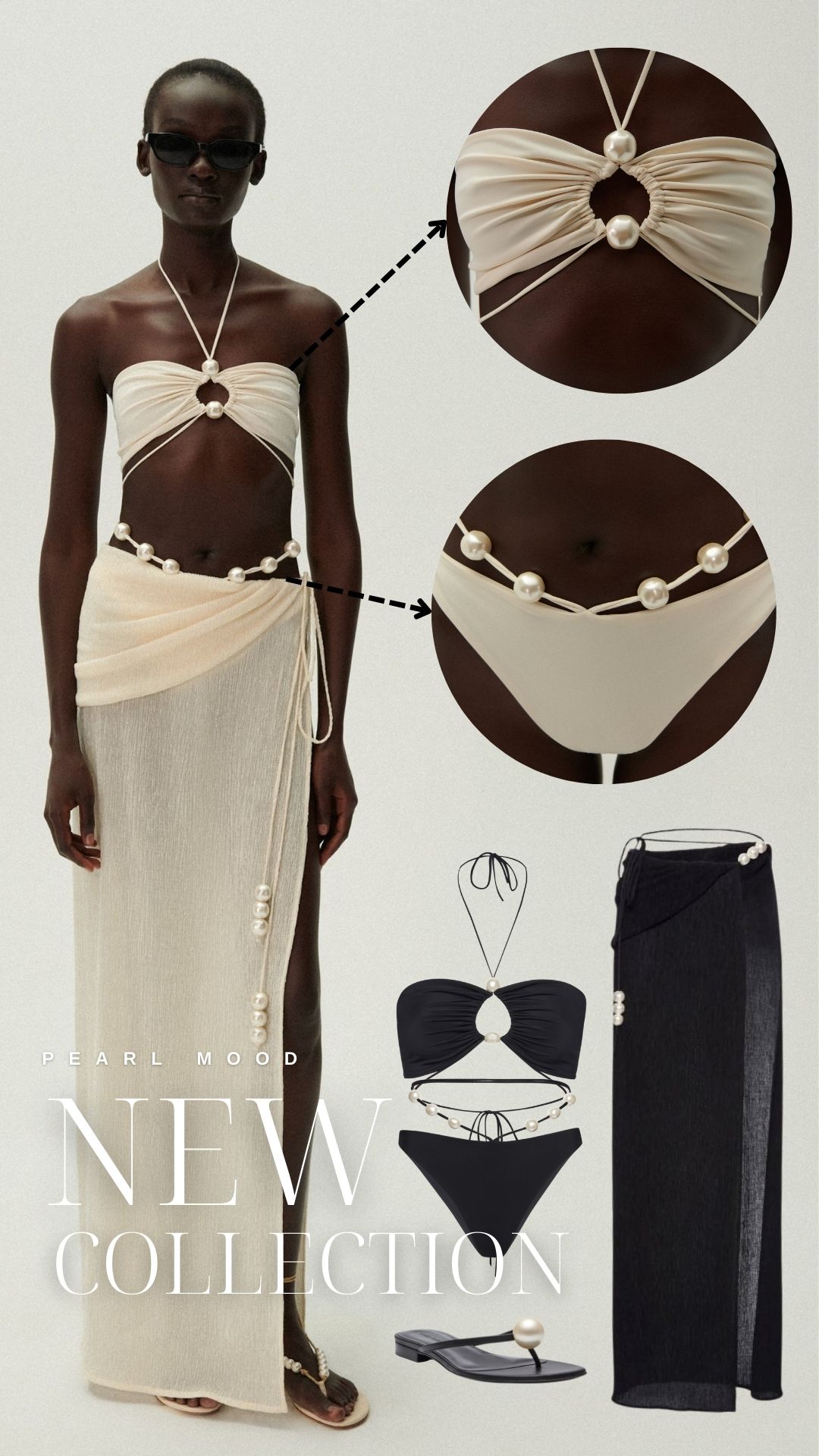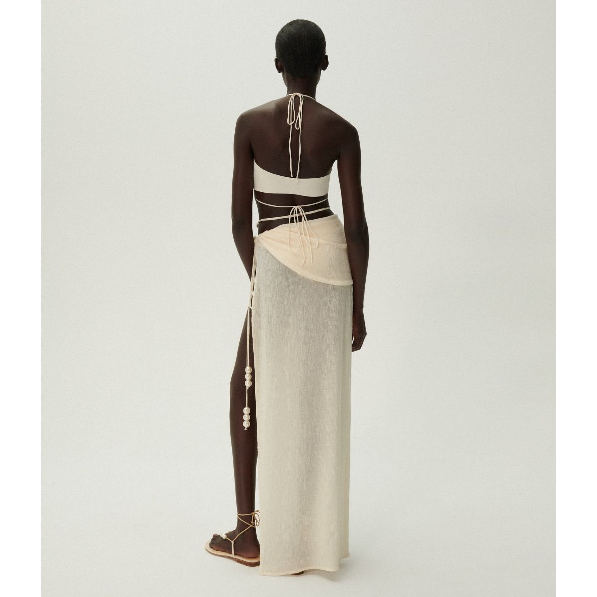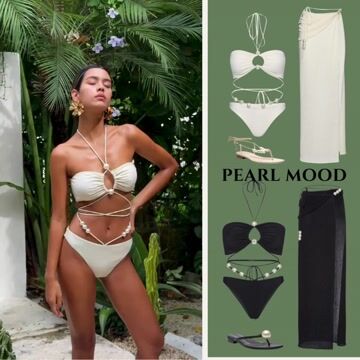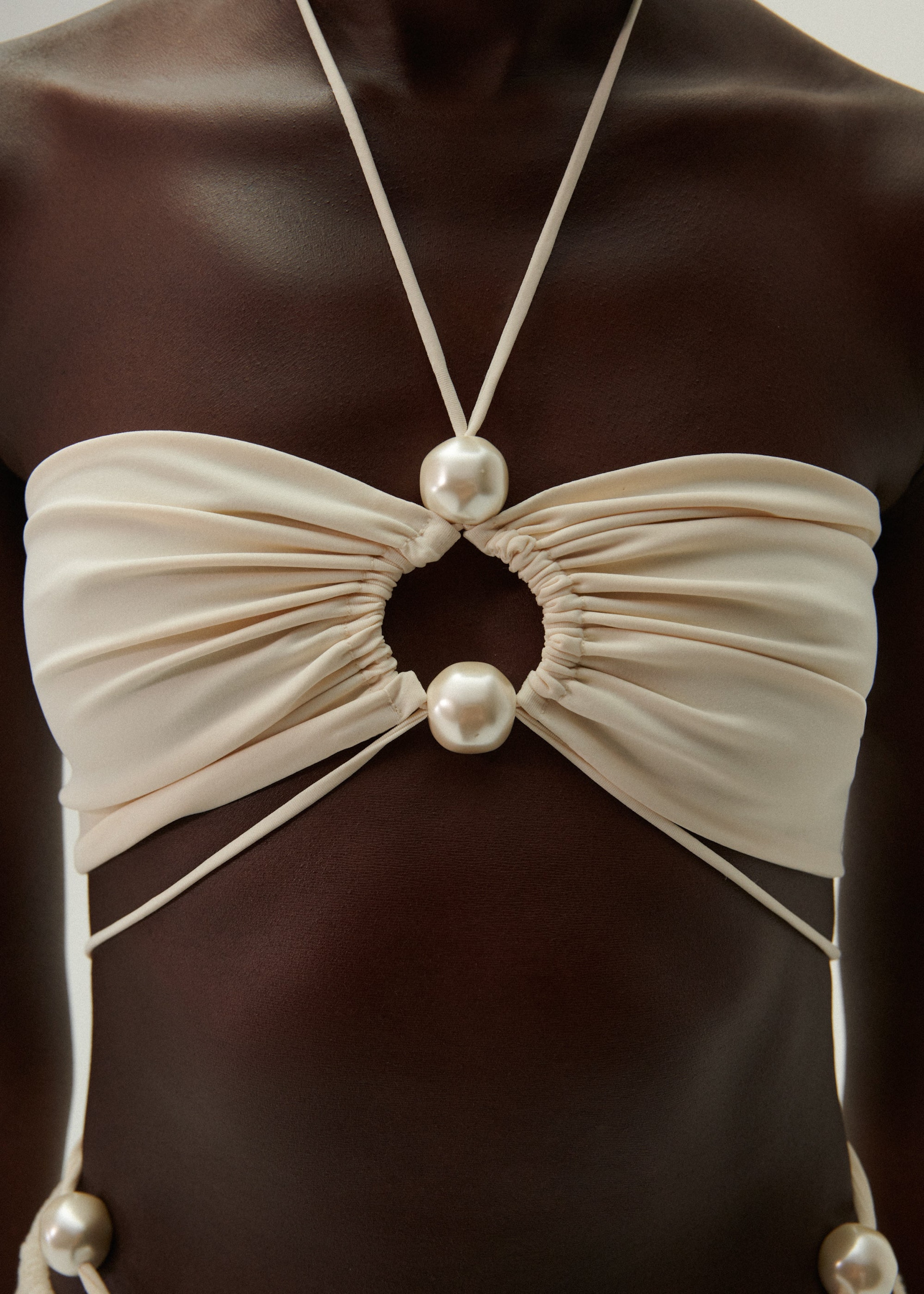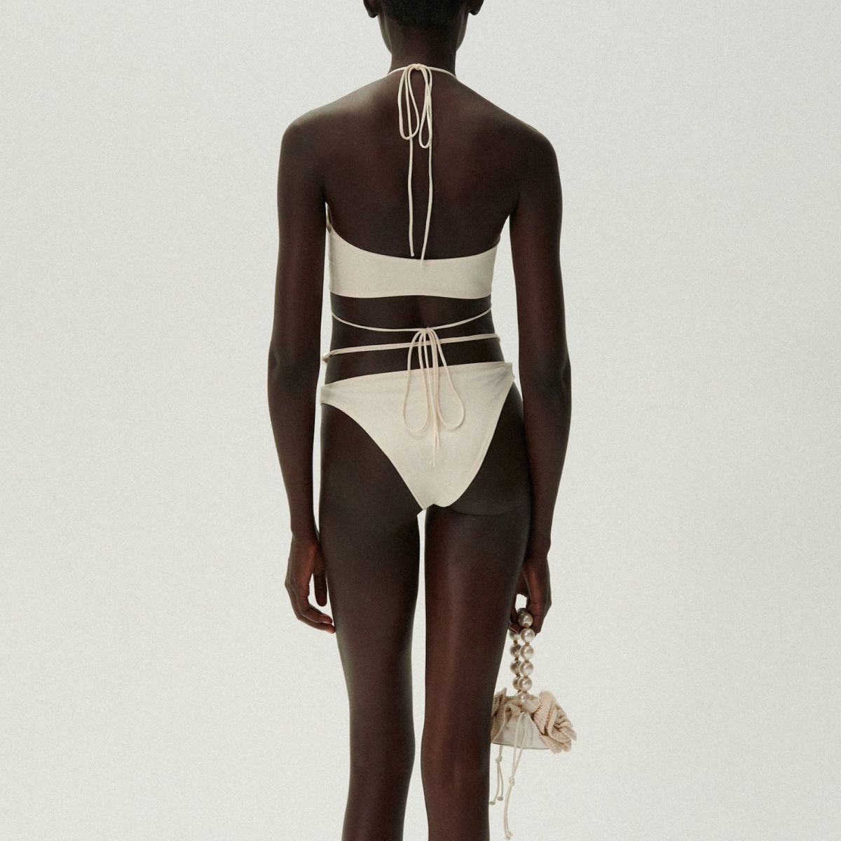 Pearl Detail Halter Lace Up Bikini Swimsuit and Sarong Flaxmaker