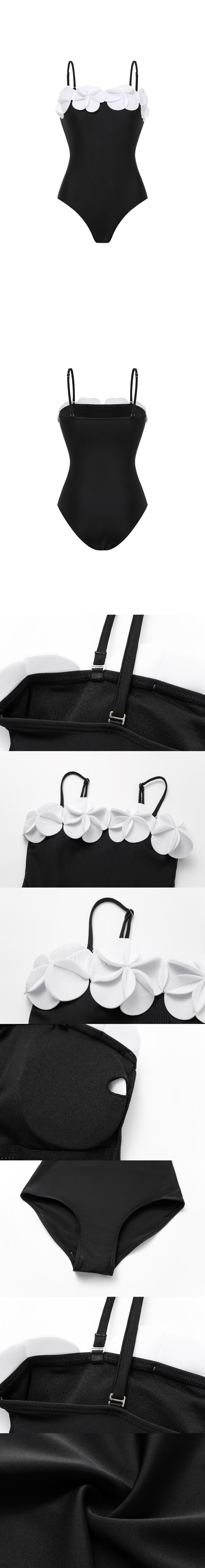 Bandeau 3D Flower Color Block One Piece Swimsuit And Skirt