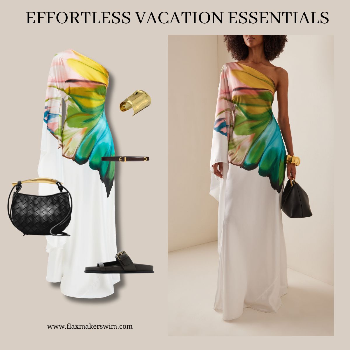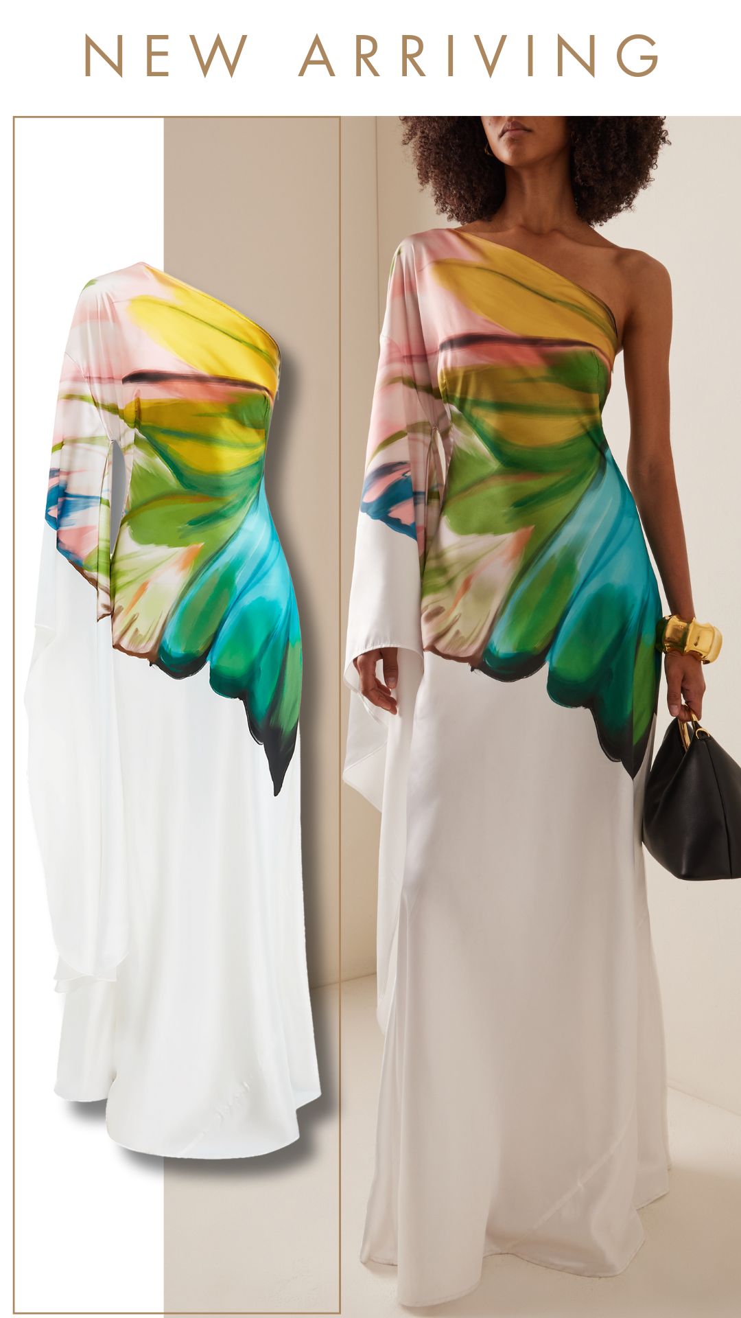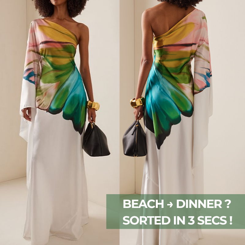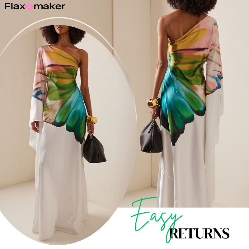 Oblique Shoulder Papillon Print Dress