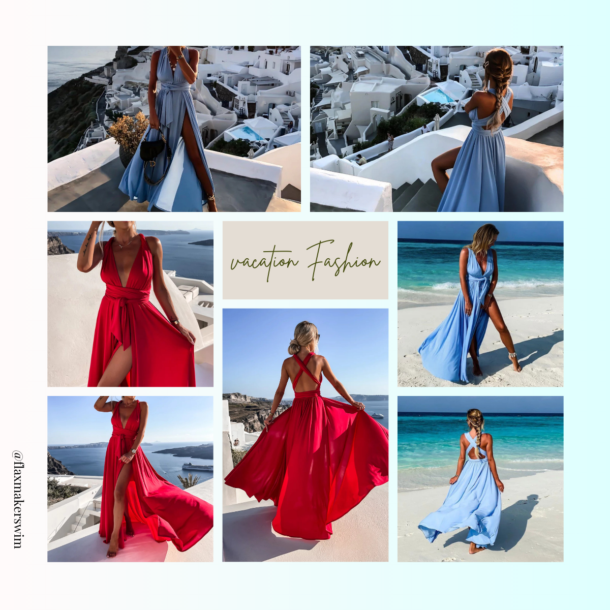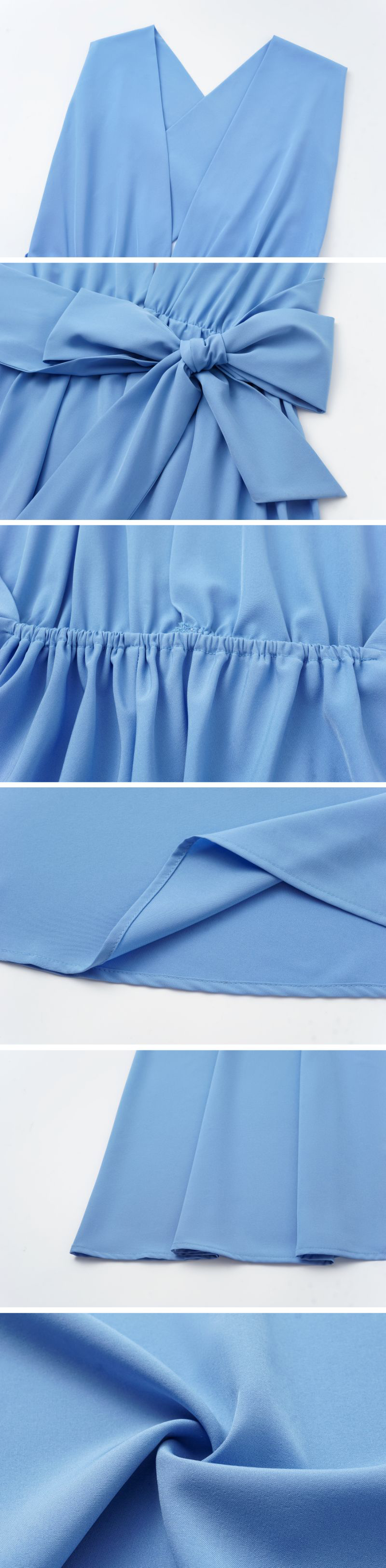 Vacation Cross Straps Blue Slit Dress