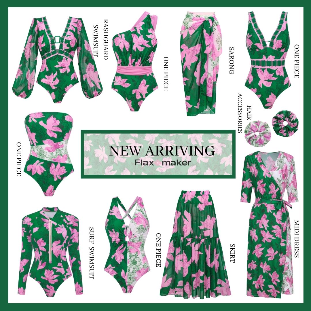 Lemon Print Tie-shoulder One Piece Swimsuit and Sarong or Skirt Flaxmaker