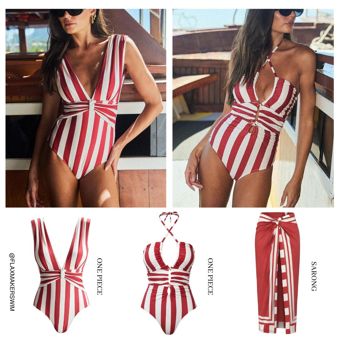 Lemon Print Tie-shoulder One Piece Swimsuit and Sarong or Skirt Flaxmaker
