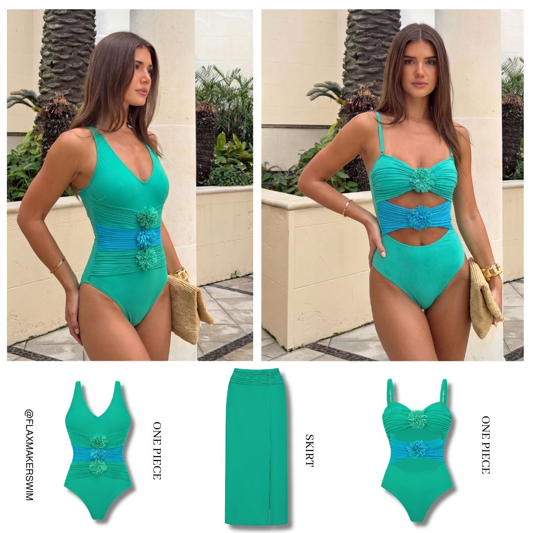 V Neck Solid Color Laser Cutting Flower One Piece Swimsuit and Skirt