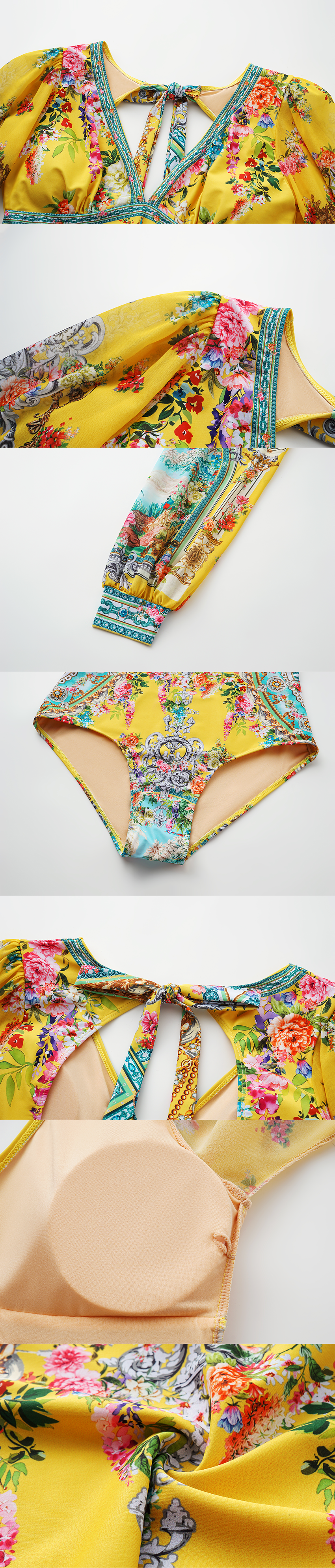 Long Sleeves Bougainvillea Print Swimsuit Set(s)